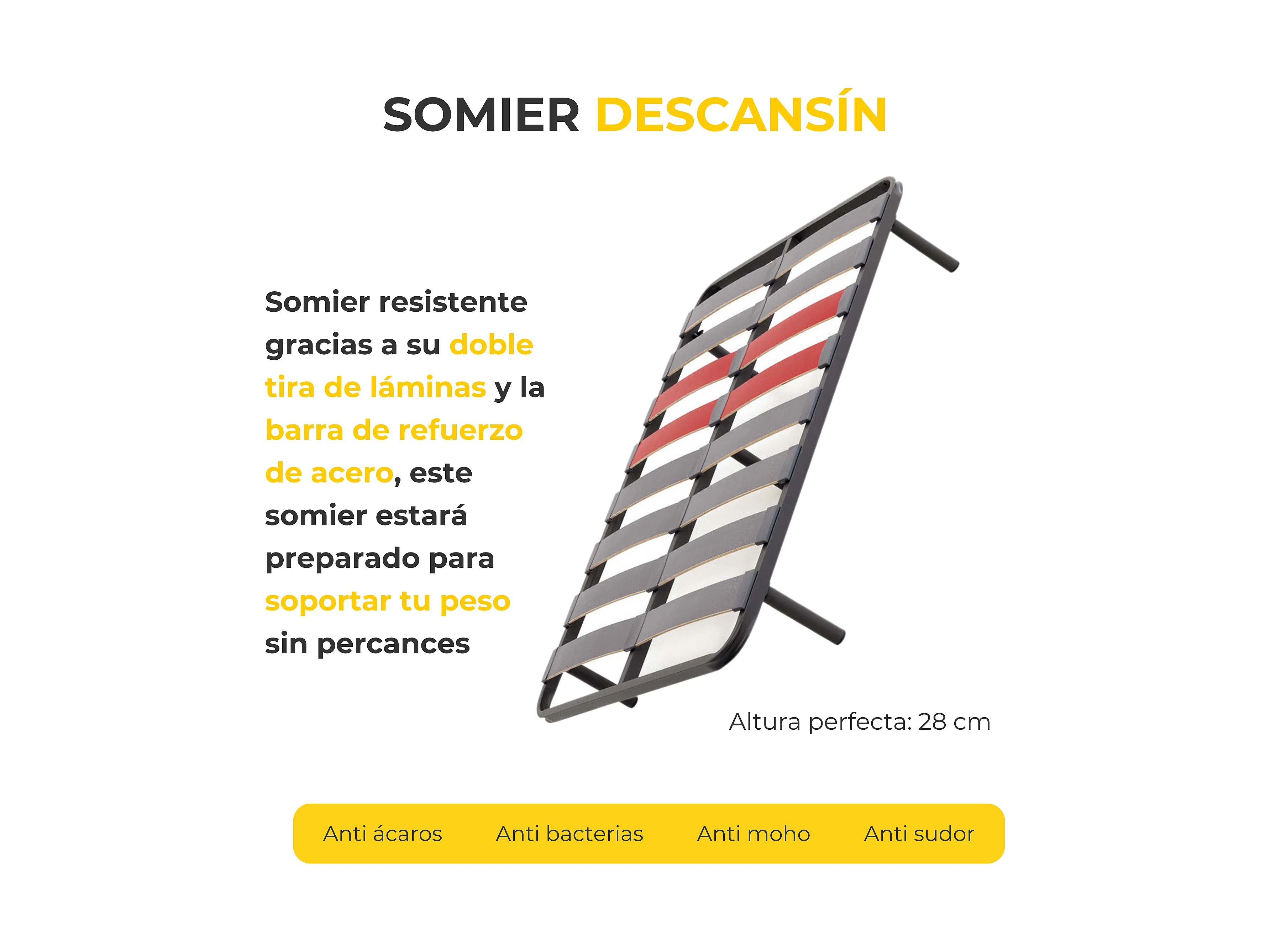 Pack Colchón Descansin + Somier con patas 140x190 | Ideal para Personas con Dolores de Espalda | Alta Firmeza | Silencioso