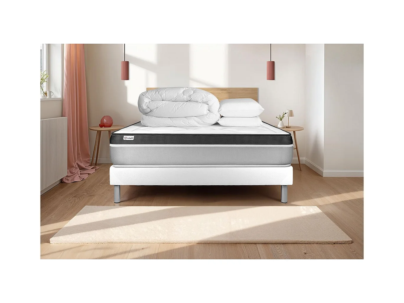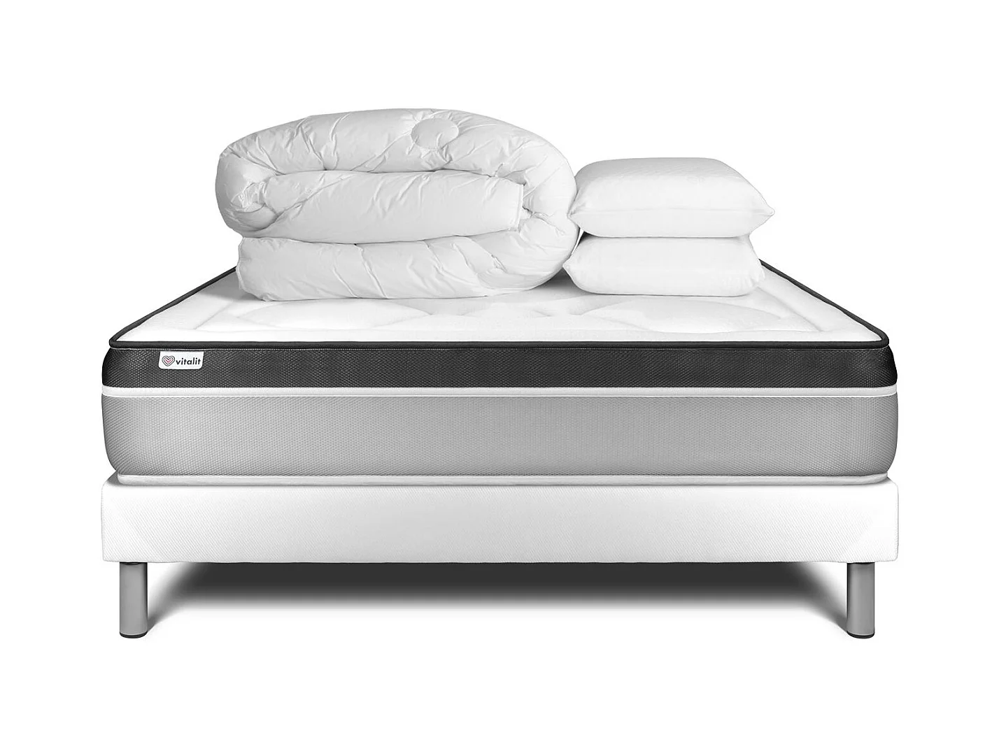 Pack cama completa - Colchón 200x200cm + Somier con láminas (kit) + 2 almohadas + Edredón - Vital Ergo