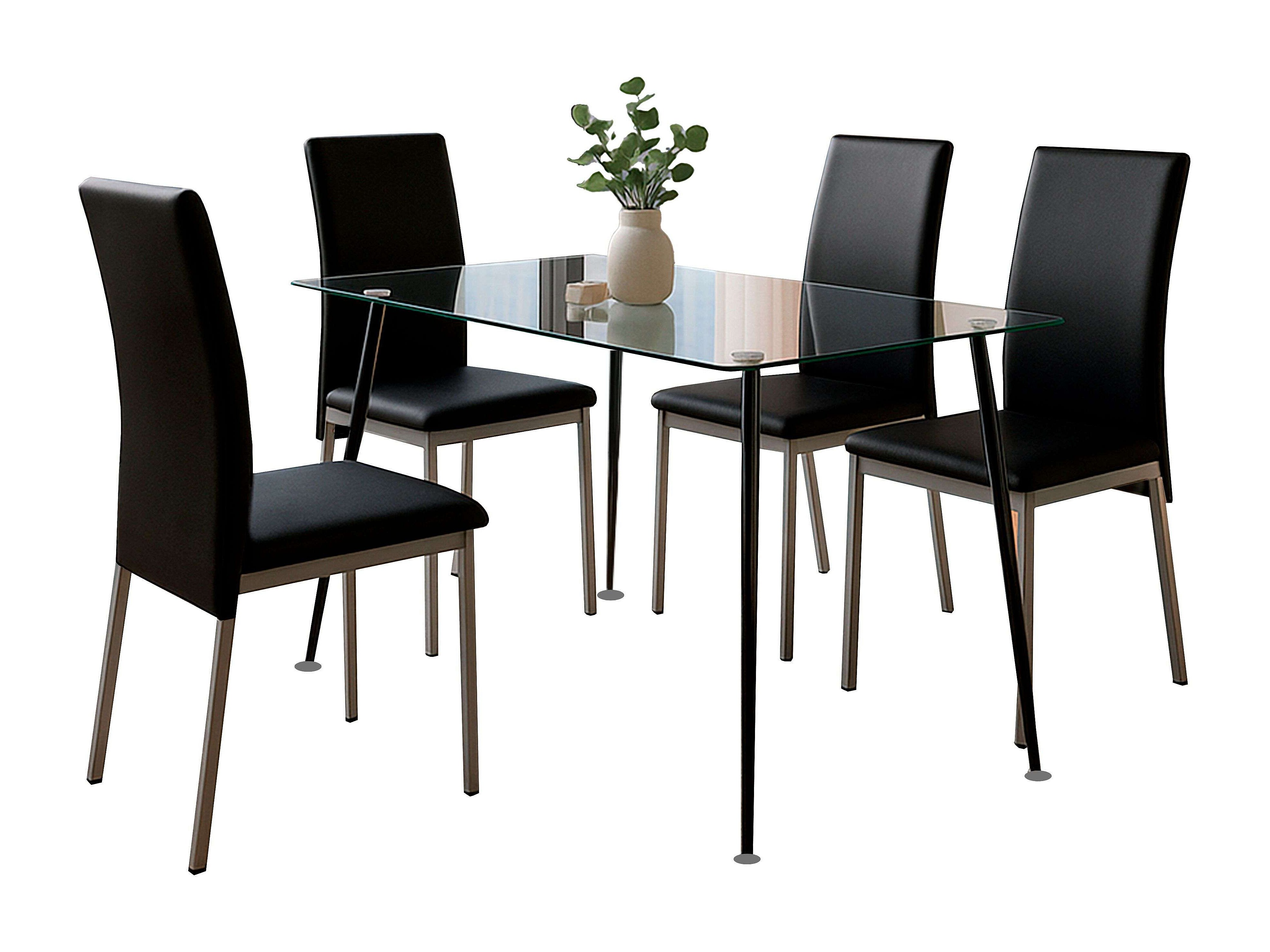 Pack comedor Saona negro cristal metal (Mesa fija + 4 sillas)