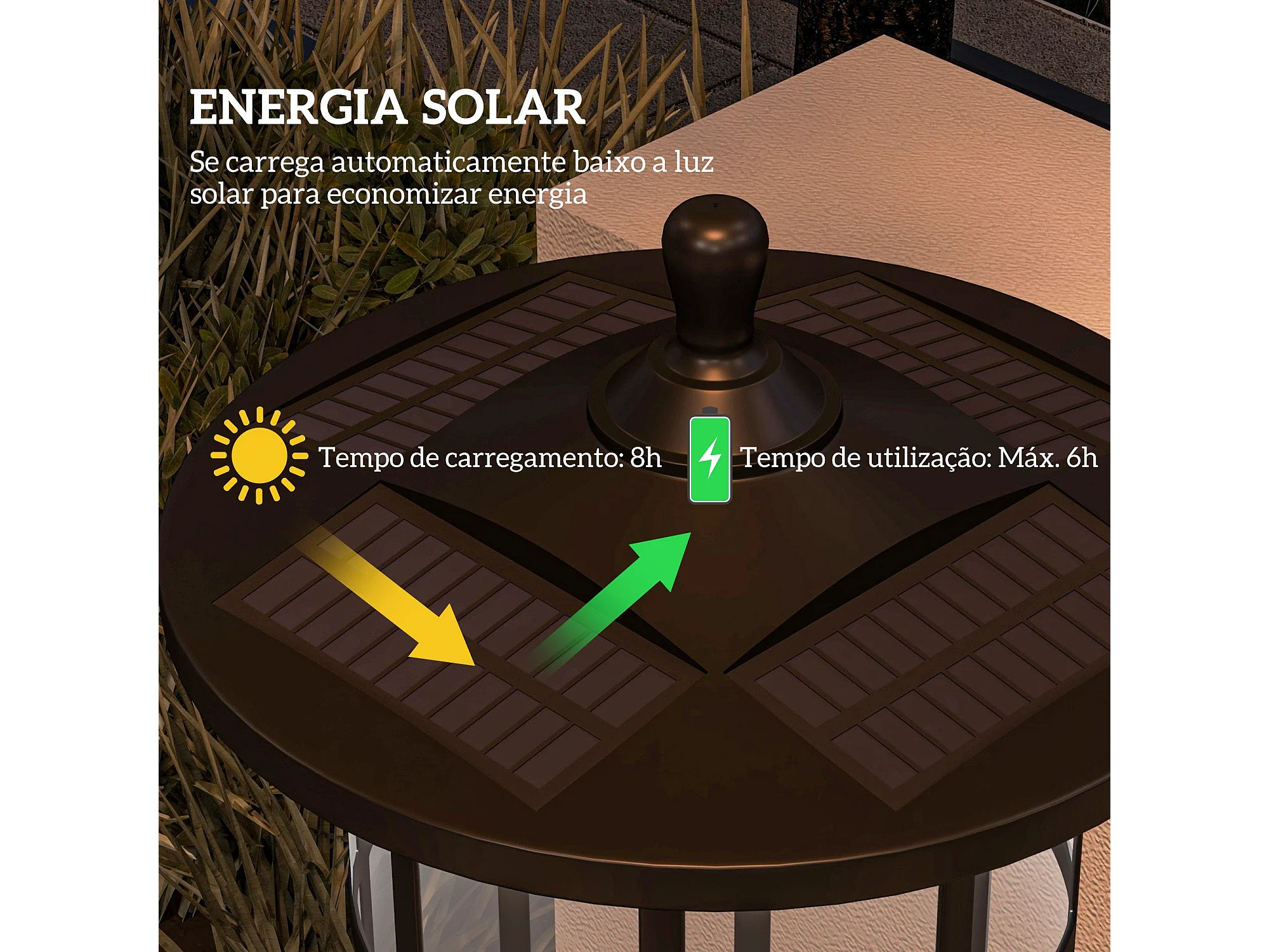 Pack de 2 farolas Alfredo Outsunny carga solar negro 184x23,5 cm