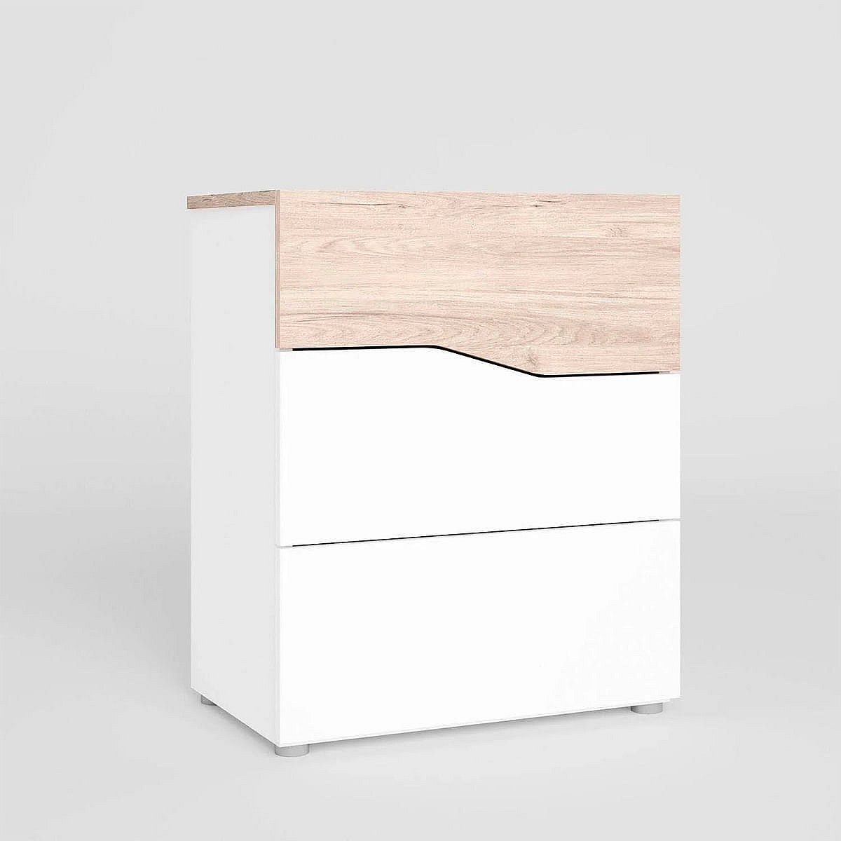 Mesita de noche Cannes 3 cajones blanco mate/sahara 65x54x34,8 cm
