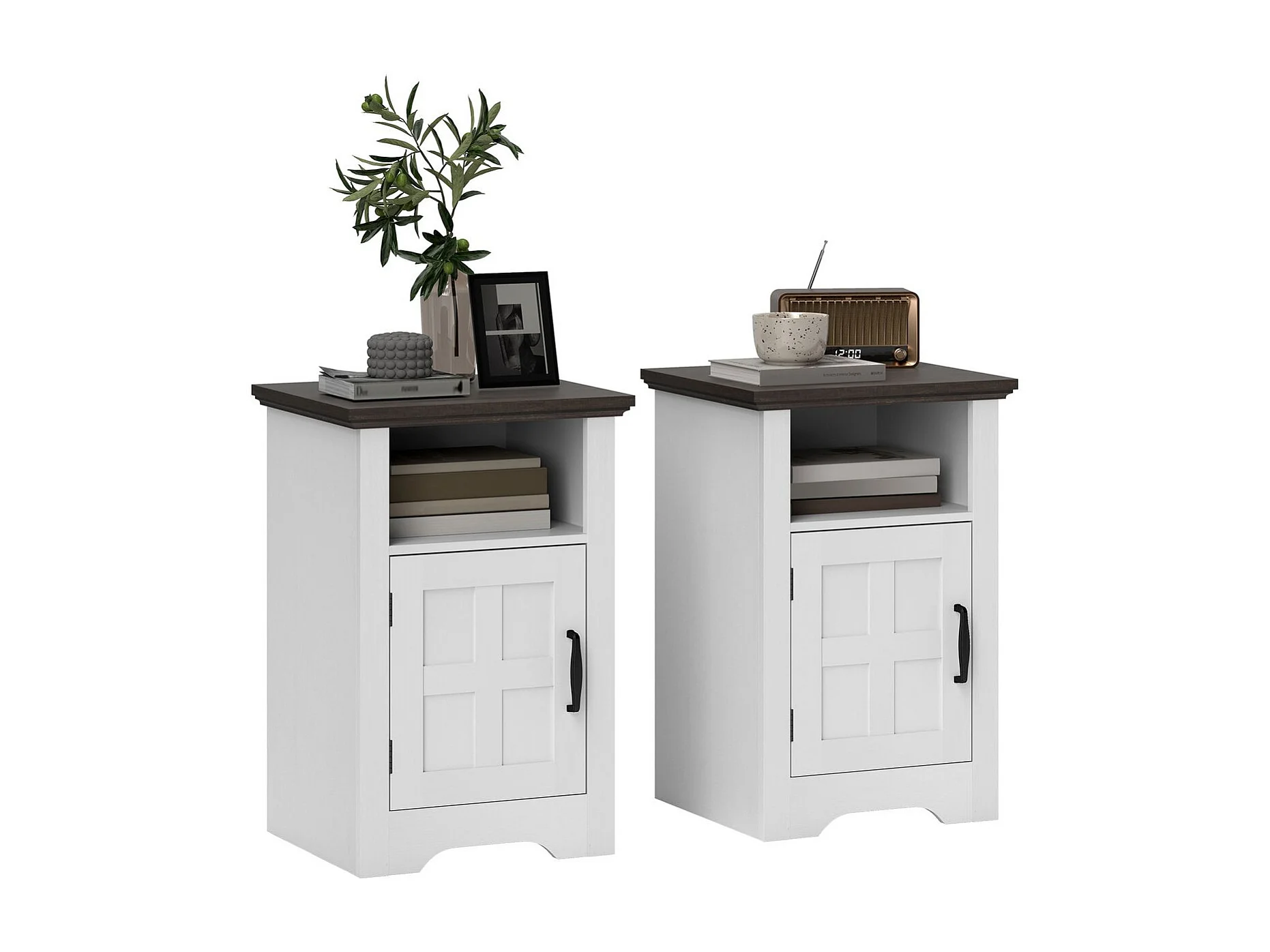 Pack de 2 mesitas de noche Remo Homcom con puerta y compartimento blanco/marrón 60x40x35 cm