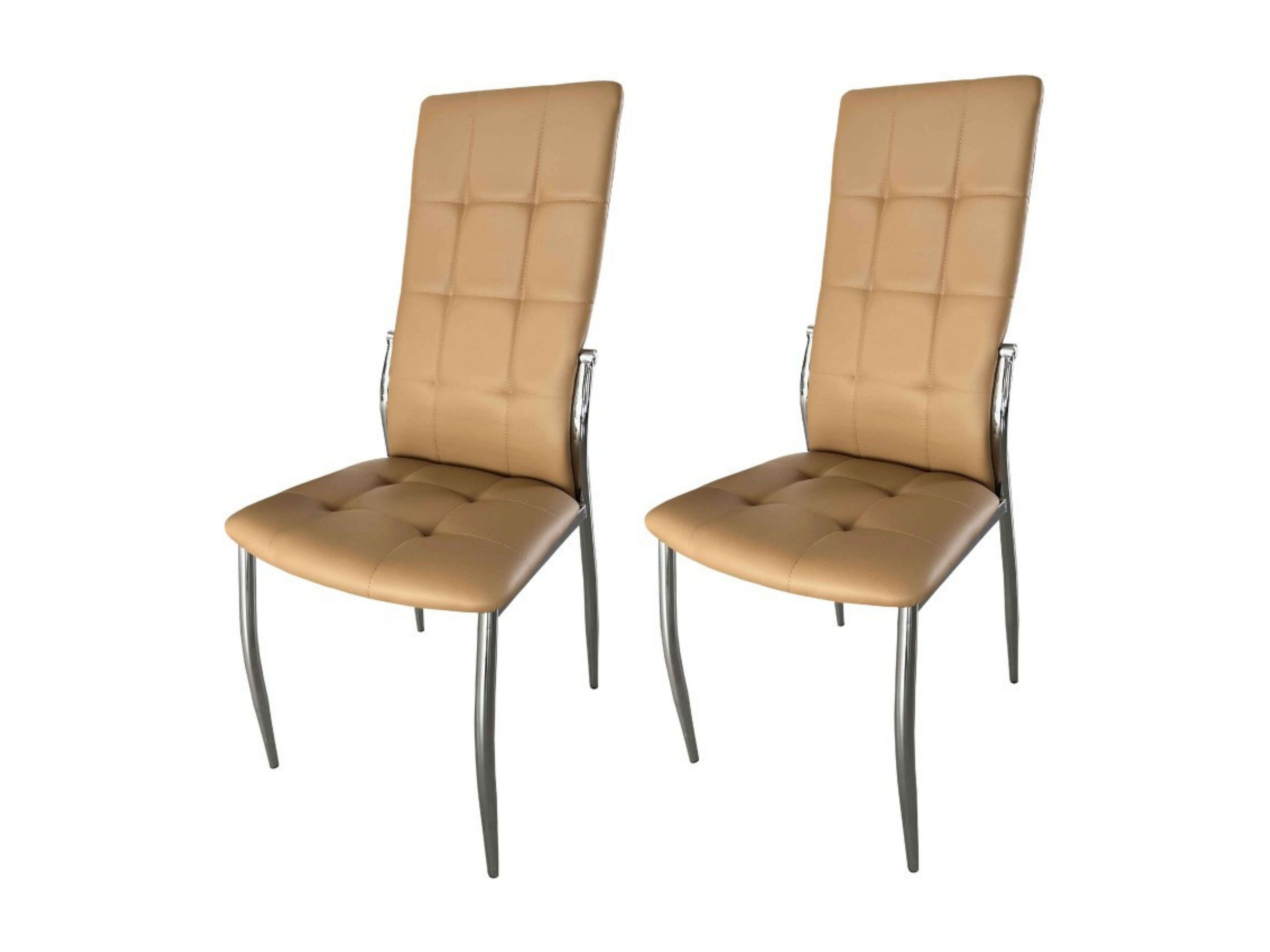 Pack de 2 Sillas de Comedor Salón Laci, Polipiel Cromadas Beige 45x101x51 cm