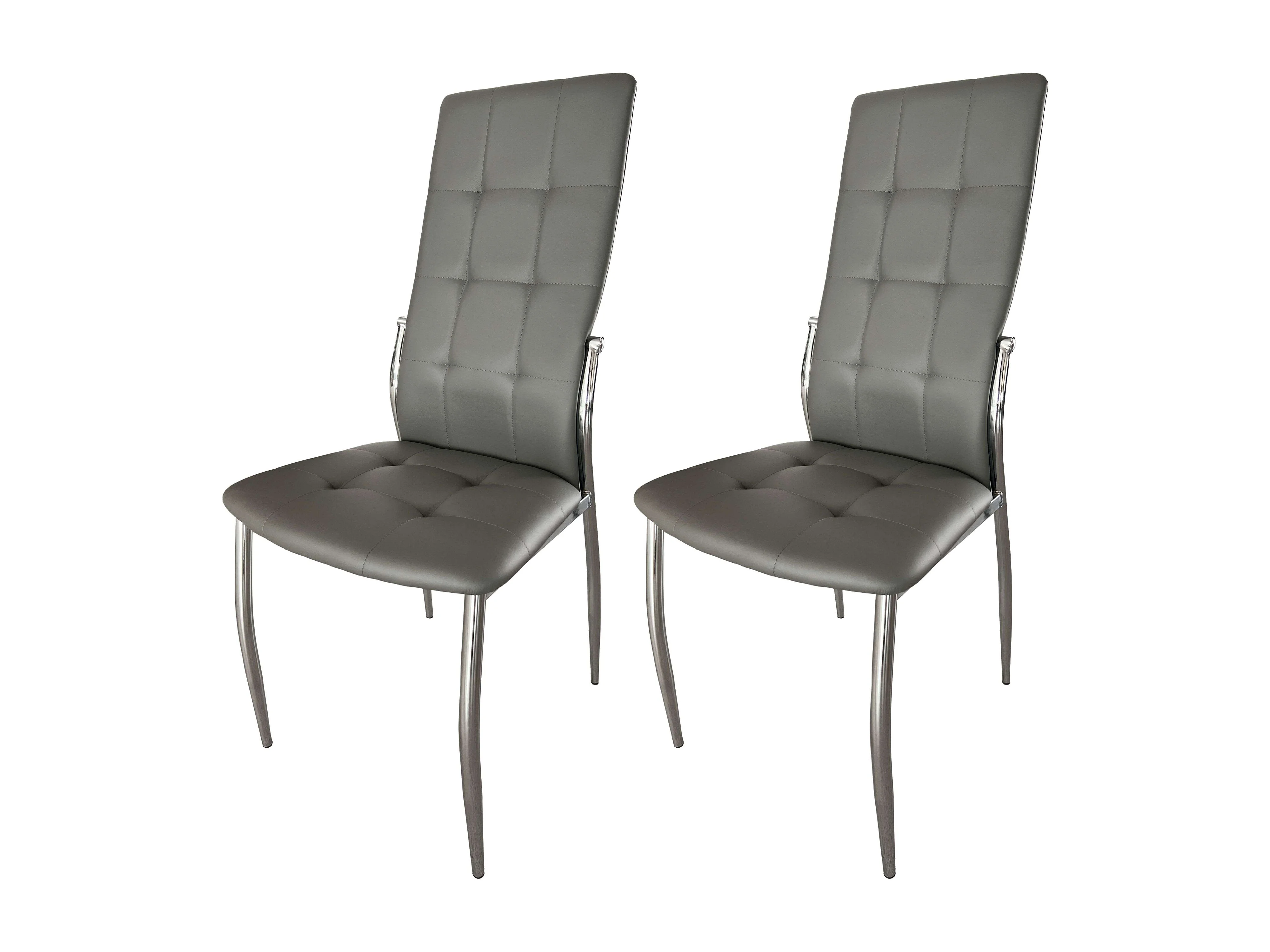 Pack de 2 Sillas de Comedor Salón Laci, Polipiel Cromadas Gris 45x101x51 cm