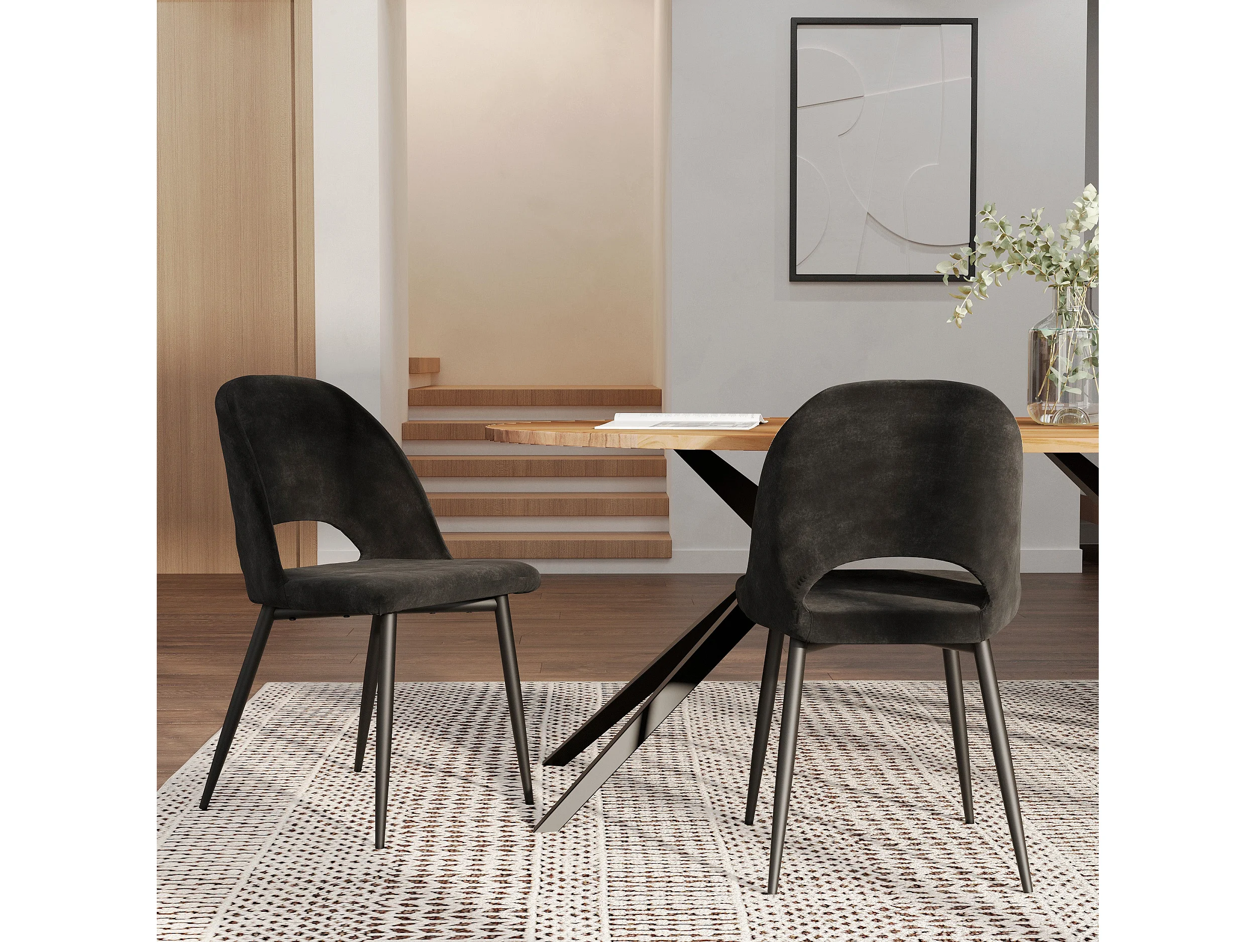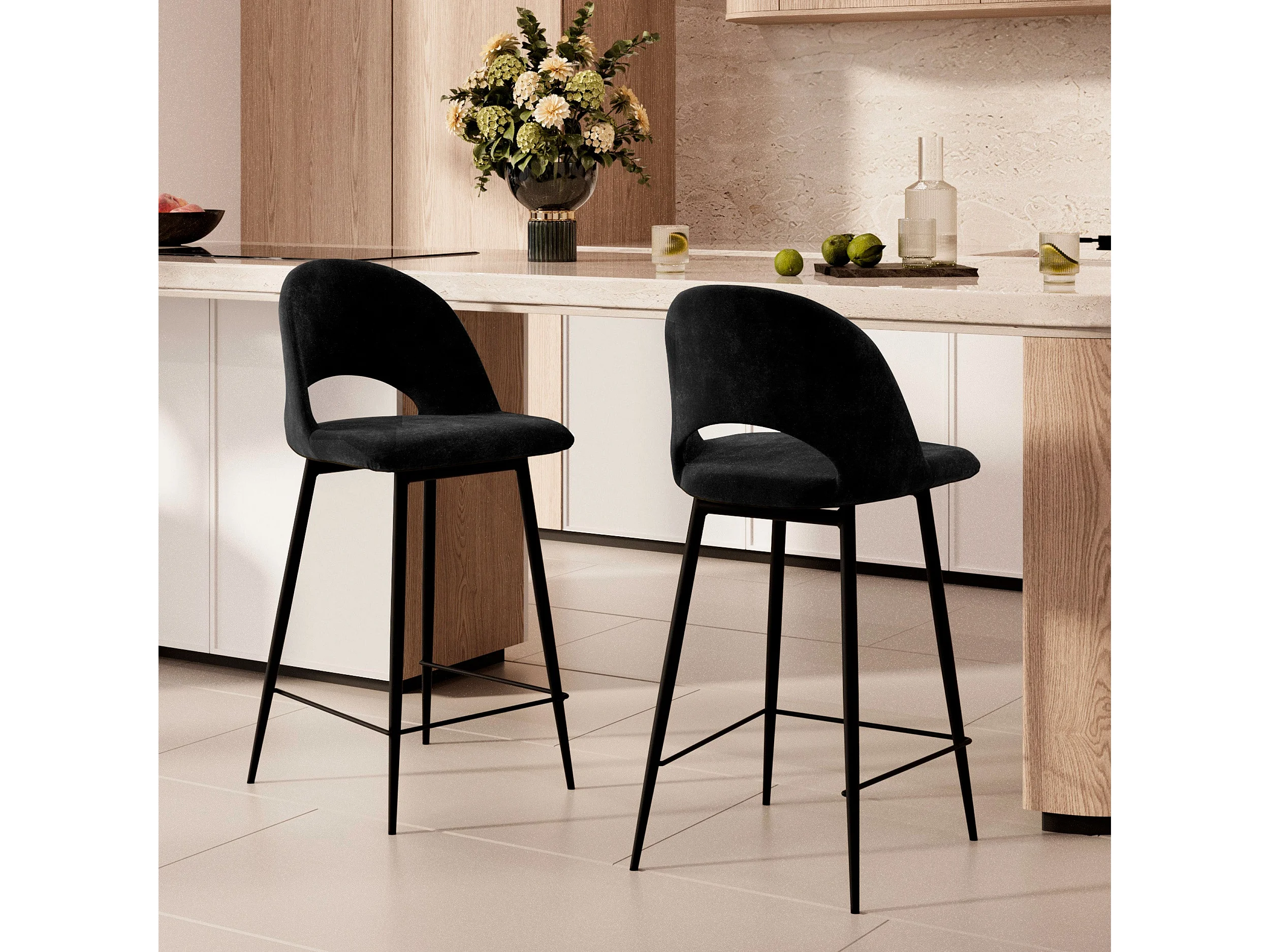 Pack de 2 sillas y 2 sillas de bar de 65 cm en terciopelo negro - Pénélope