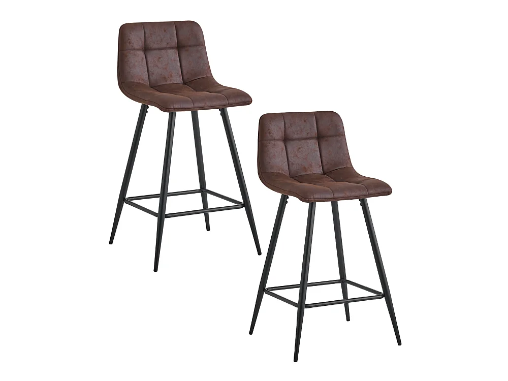 Pack de 2 taburetes altos de 93x41x45 cm en tela en color marrón y patas metálicas Dio