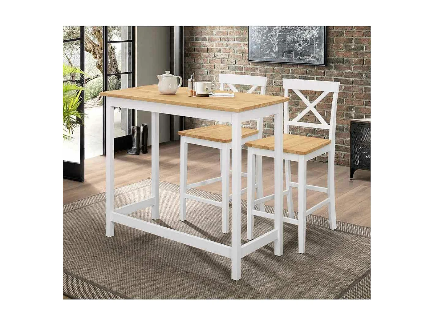 Pack de 2 taburetes de 95x42x49 cm de diseño rústico moderno en color blanco Justin