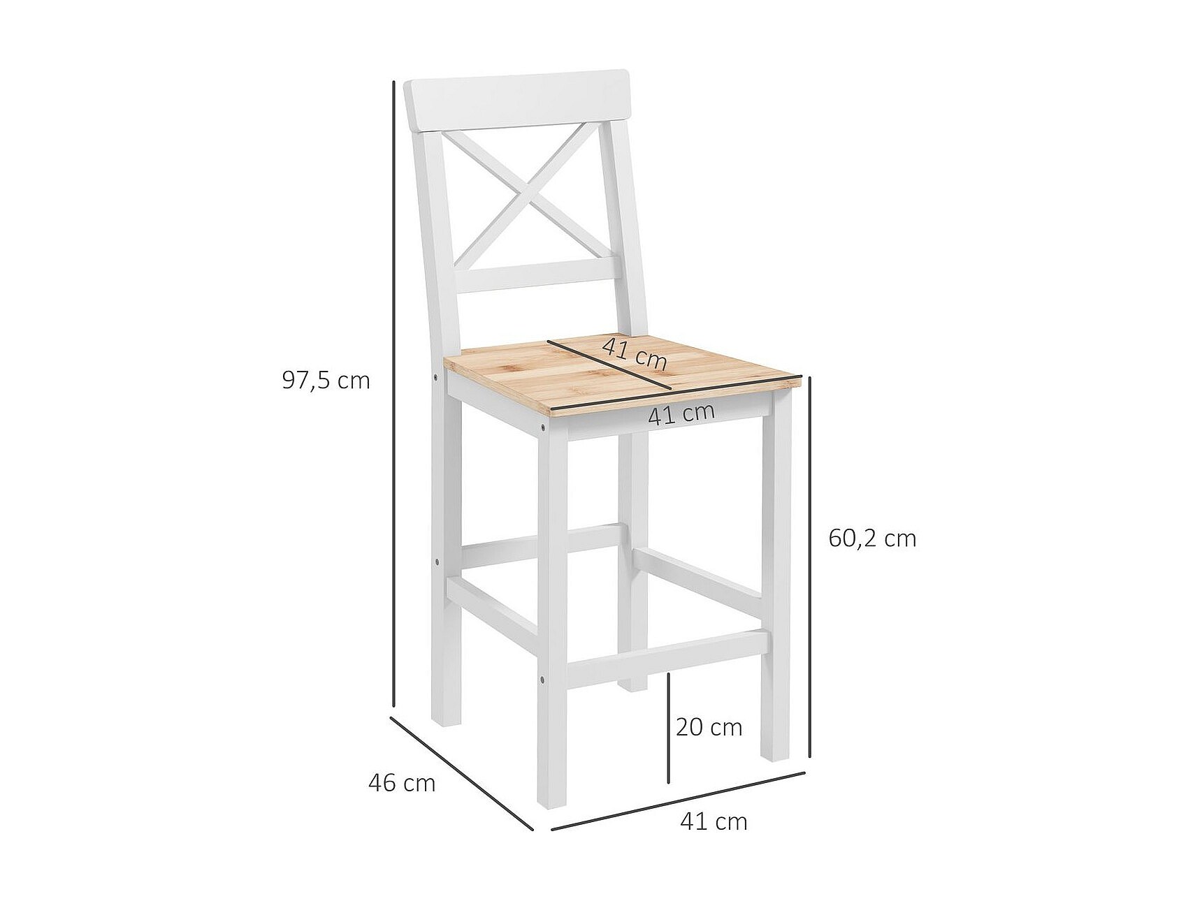 Pack de 2 taburetes Miles Homcom con respaldo y reposapiés blanco/natural 97,5x41x46 cm