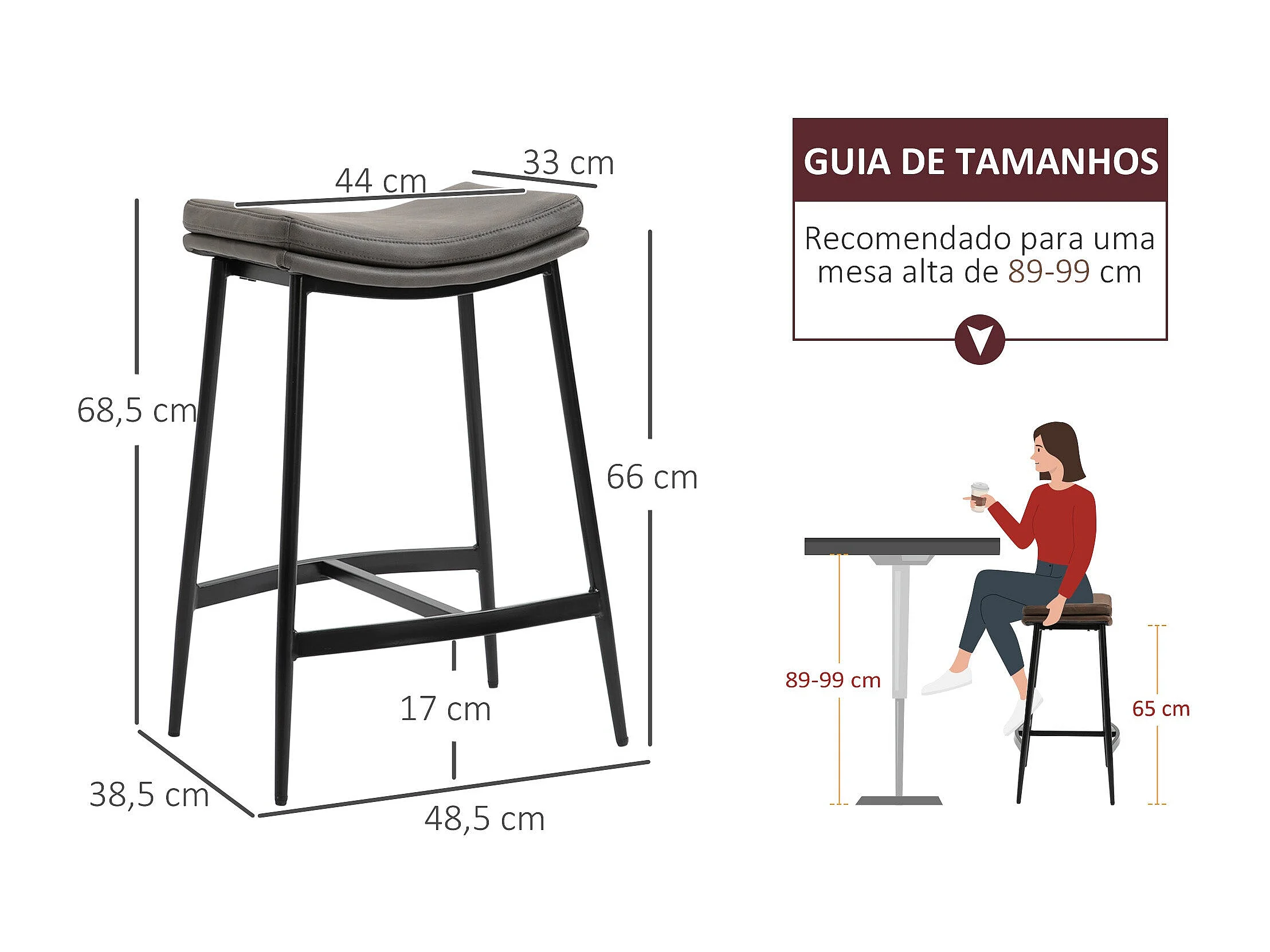 Pack de 2 taburetes Milo Homcom asiento curvo + patas de acero gris 68,5x48,5x38,5 cm