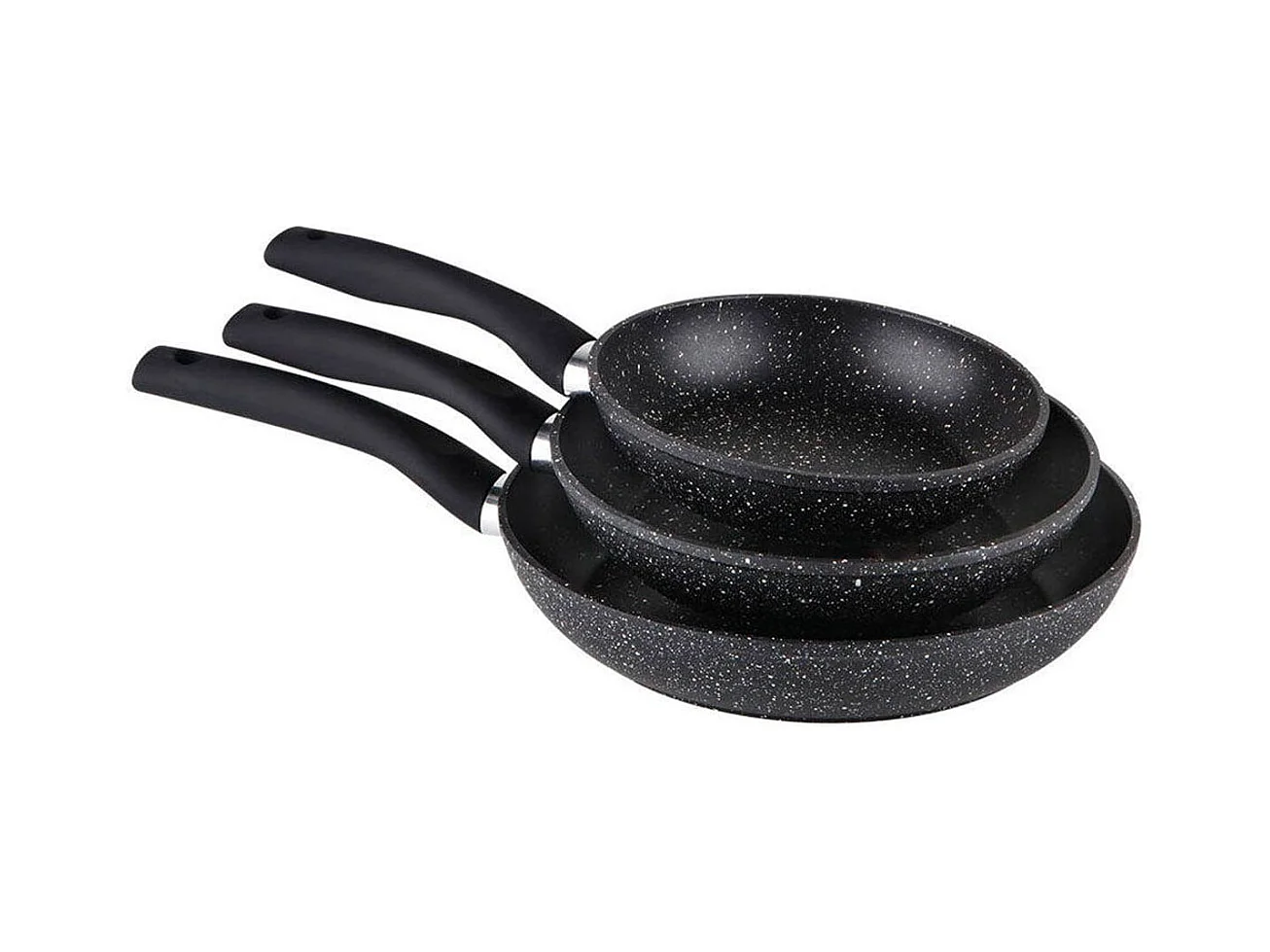 Pack de 3 sartenes Orbegozo SFB8300 aluminio forjado con revestimiento de piedra negro Ø18/Ø22/Ø26 cm