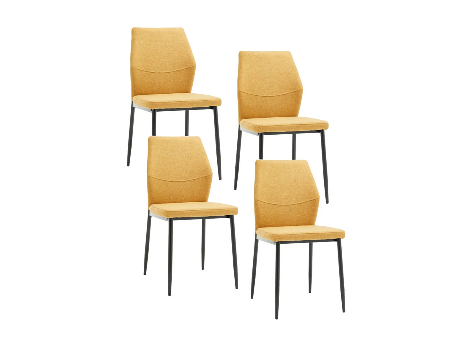 Pack de 4 sillas de 87x49x53 cm de tela en color mostaza con patas metálicas negras Nobles