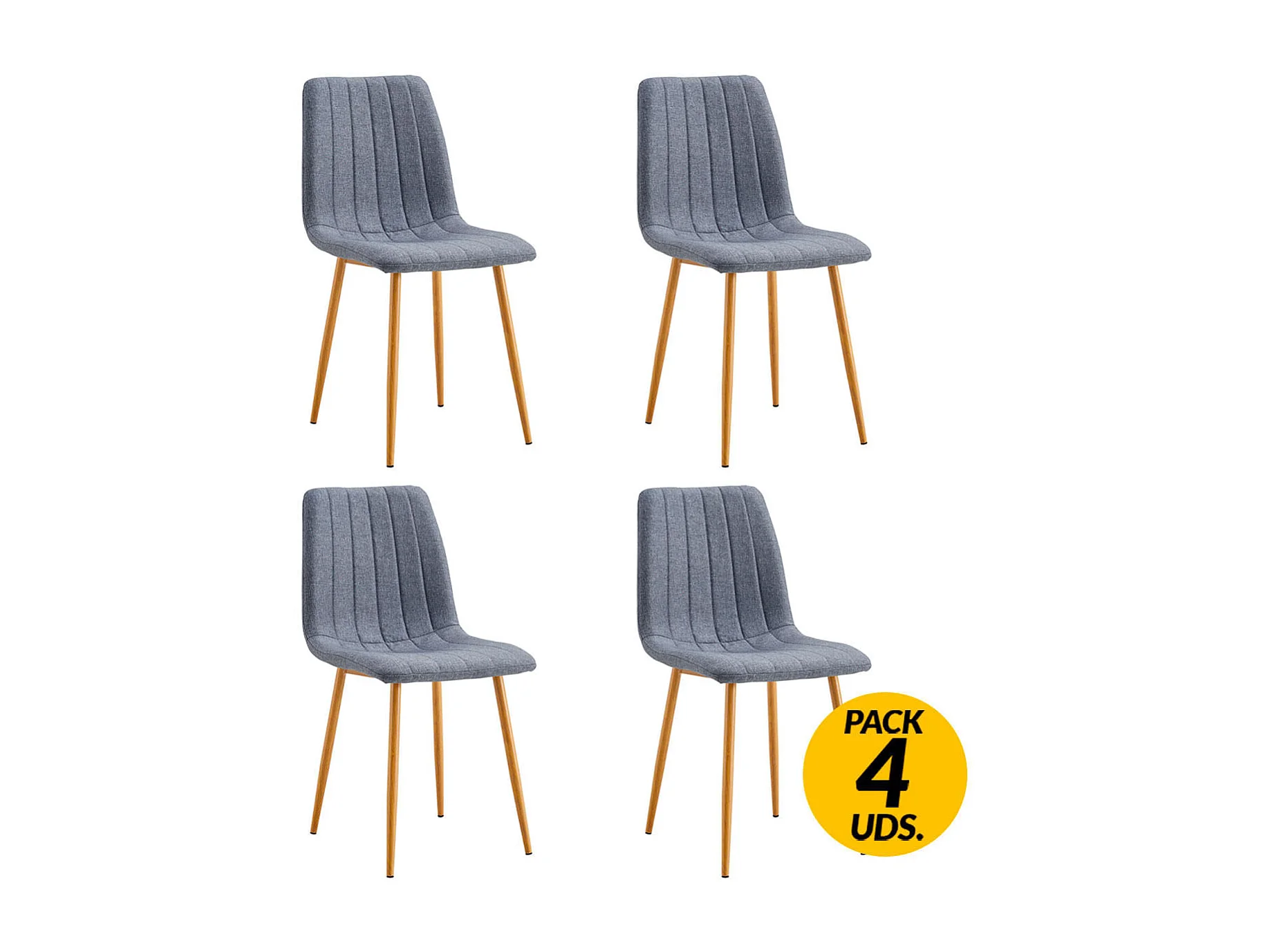 Pack de 4 sillas de comedor Nails tejido tapizado gris/oak Adec