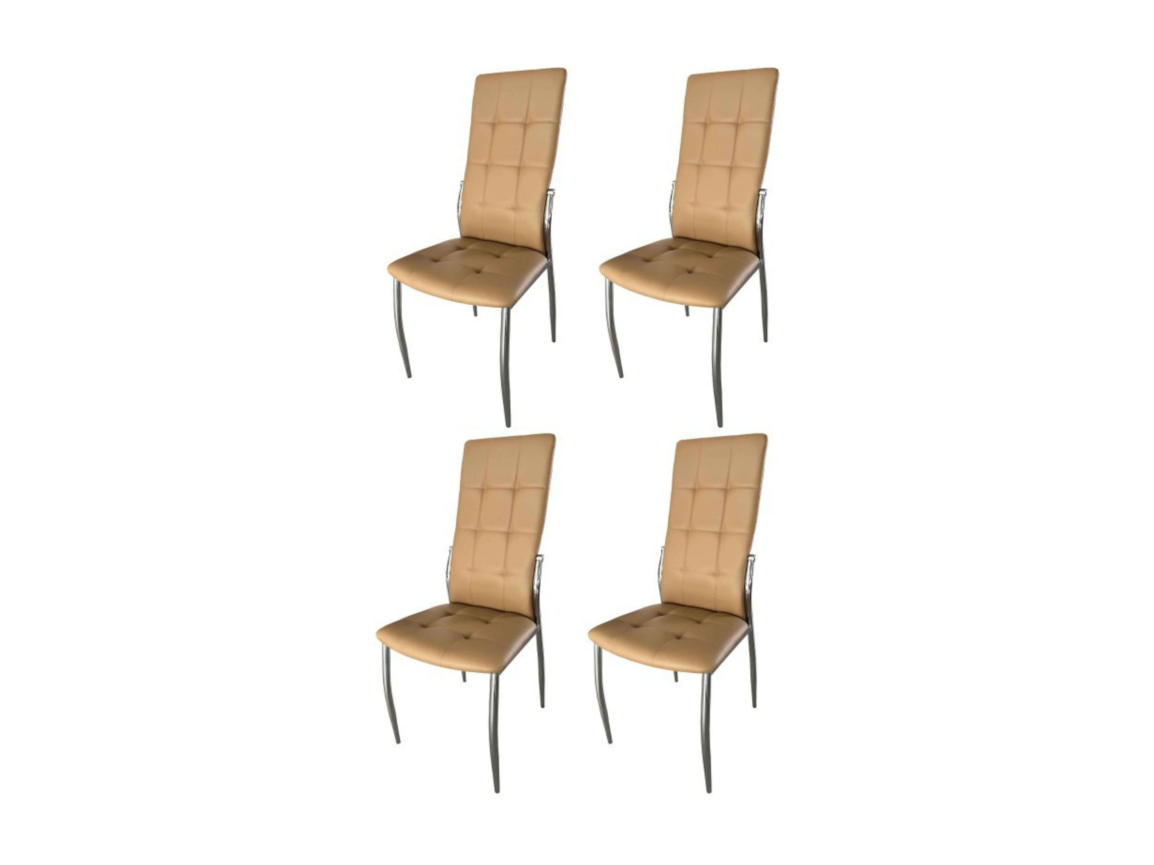 Pack de 4 Sillas de Comedor Salón Laci, Polipiel Cromadas Beige 45x101x51 cm