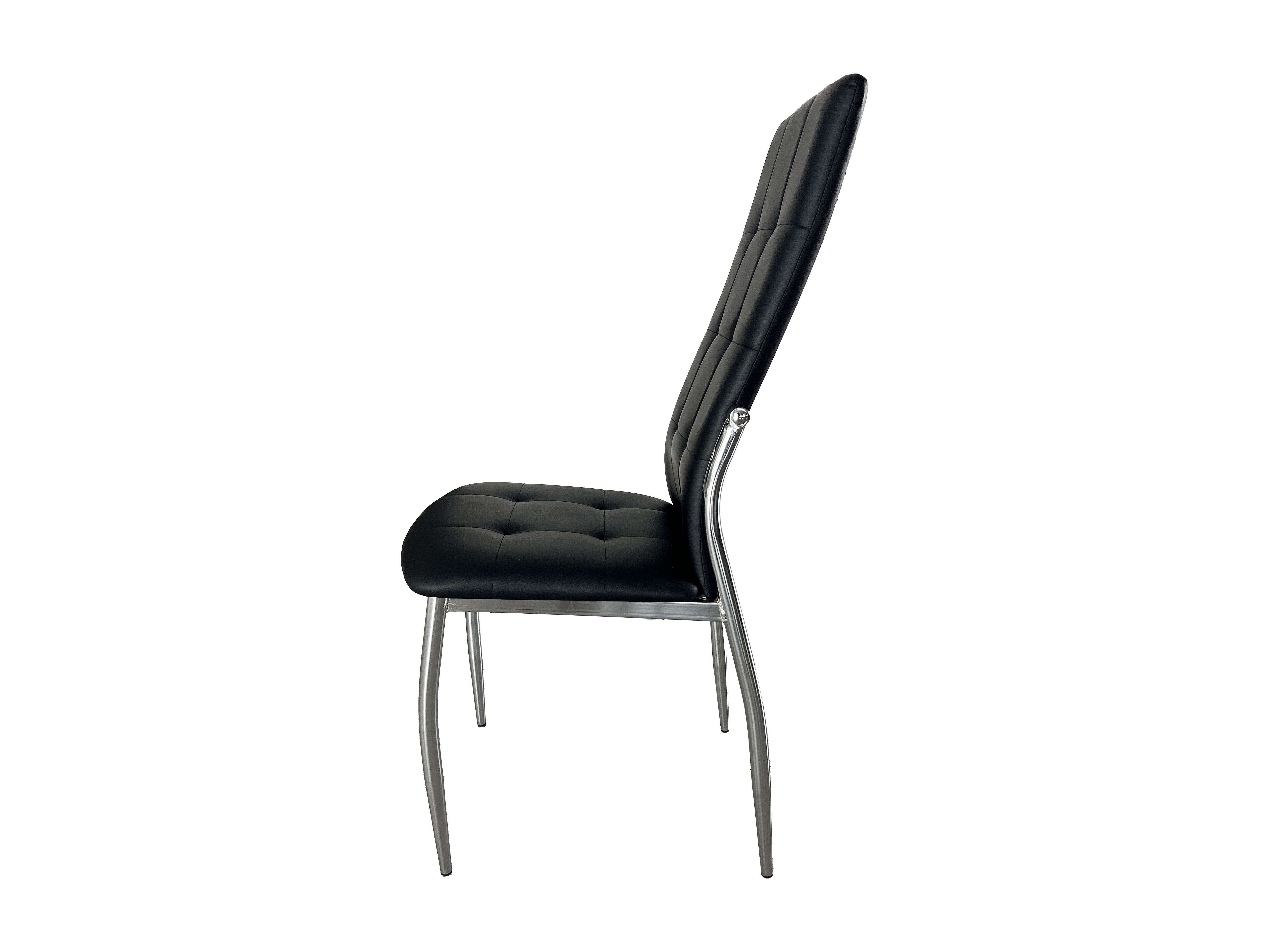 Pack de 4 Sillas de Comedor Salón Laci, Polipiel Cromadas Negro 45x101x51 cm