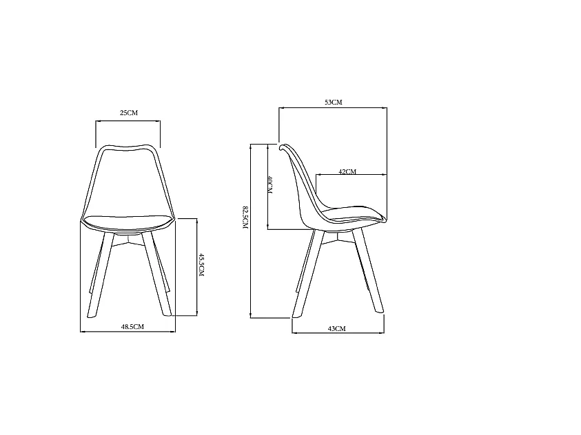 Pack de 4 sillas modelo Dana tapizadas en piel sintética blanco, 48.5cm(ancho ) 82.5cm(al