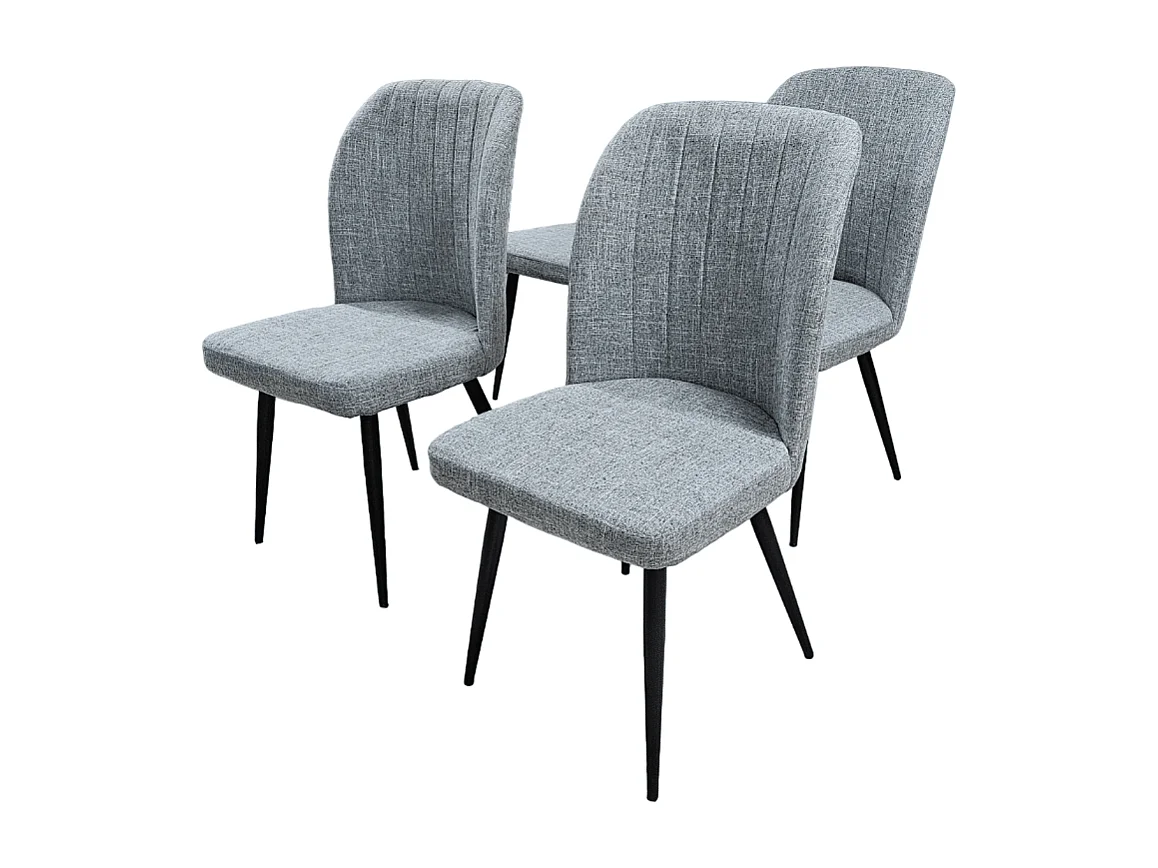 Pack de 4 Sillas Modernas para Comedor y Salón – Tapizado en Color Gris con Patas Metálicas Negras, Medidas: 46 cm x 55 cm x 92 cm