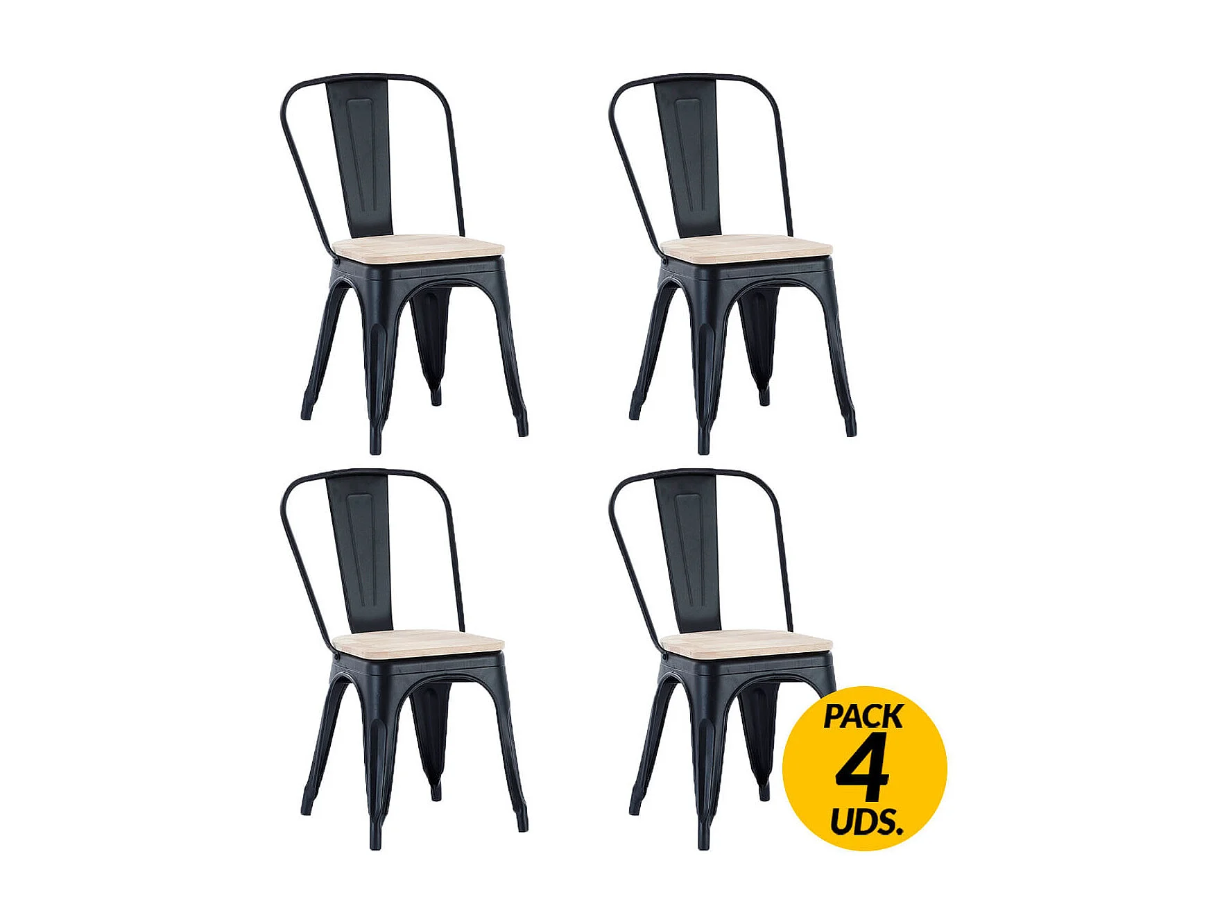 Pack de 4 sillas Tolix roble Nordish/negro 85x45x45 cm Adec