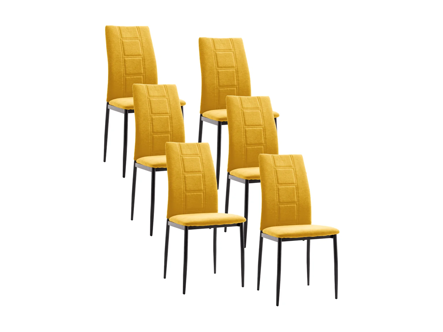 Pack de 6 sillas de 99x44x47 cm de tela en color mostaza y patas metálicas negras Elena