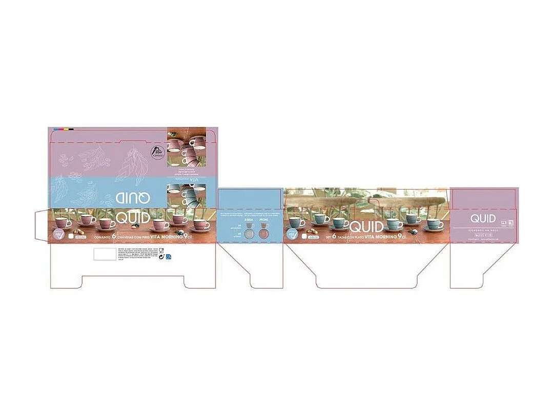 Pack de 6 tazas Vita Morning Quid con platillo cerámica rosa 9 cl