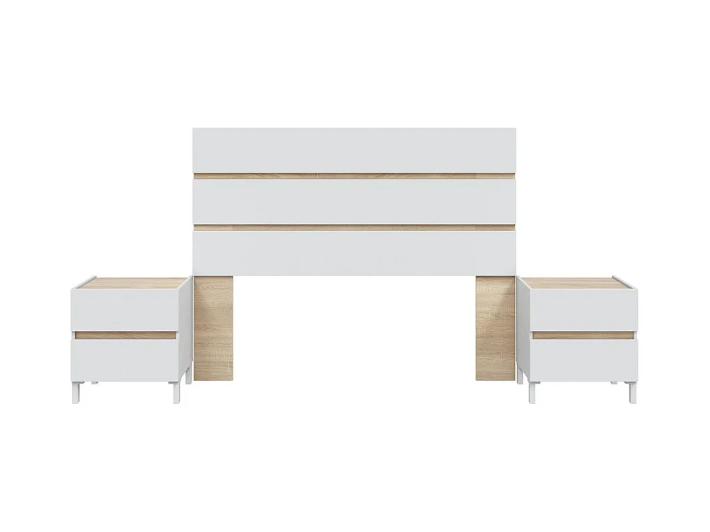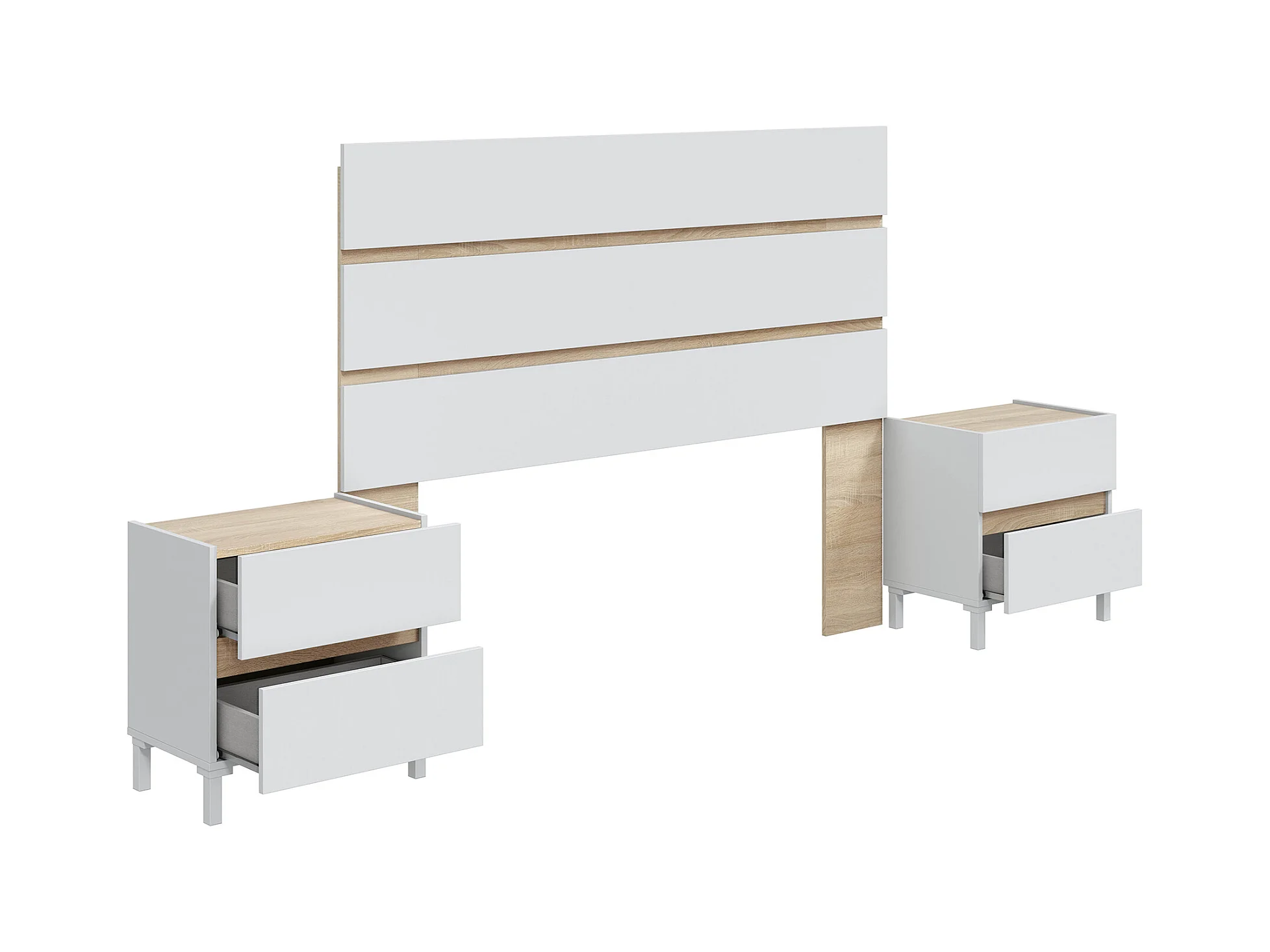 Pack de cabecero con 2 mesitas de noche de 127x260x35 cm en color blanco y beige Ébano