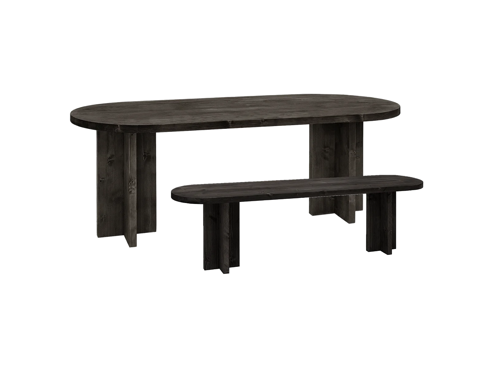 Pack de mesa de comedor de 160x78cm y banco de 120x45cm de madera maciza de abeto Decowood en tono negro - TOKYO - DECOWOOD