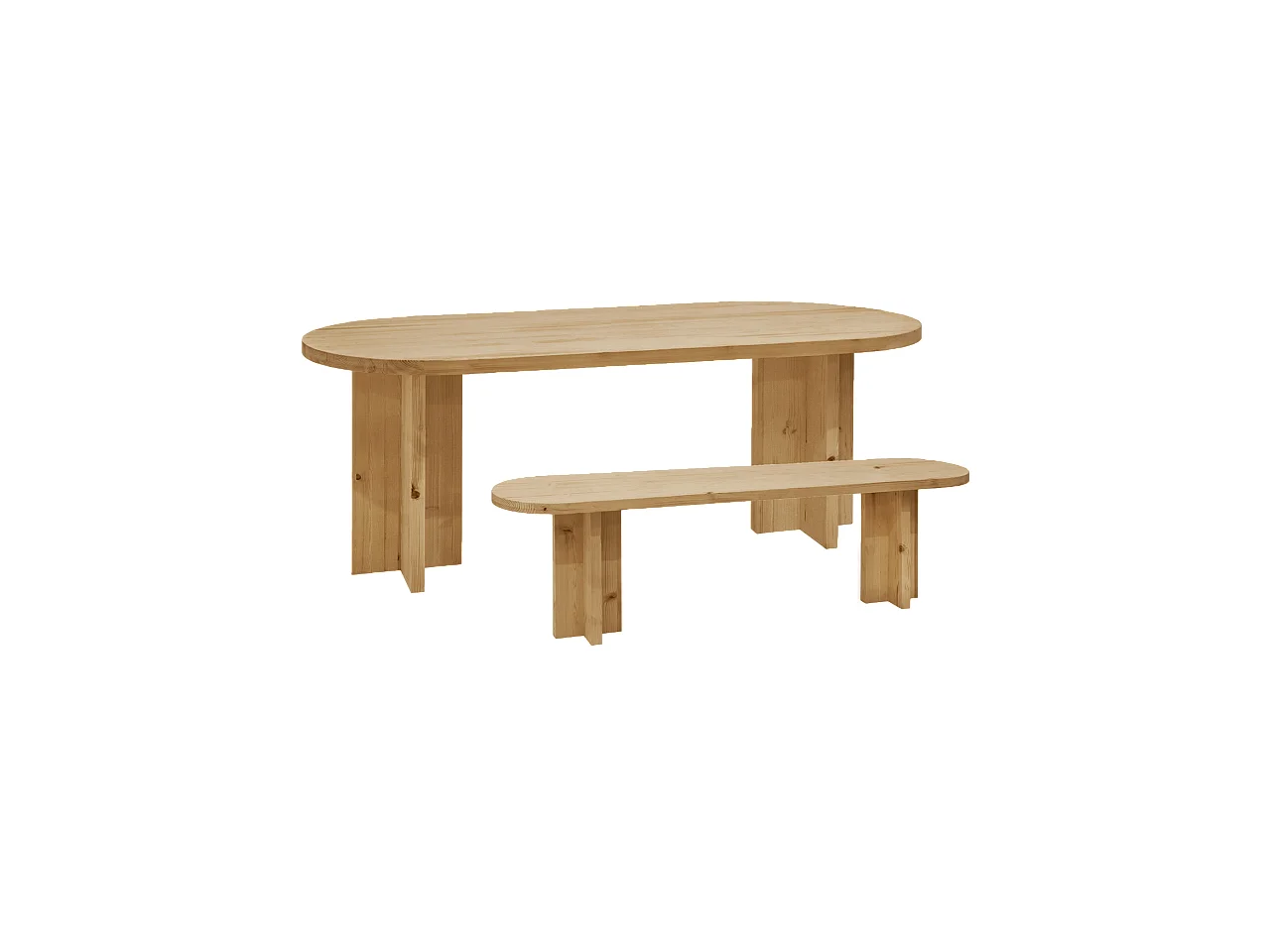 Pack de mesa de comedor de 180x80cm y banco de 140x45cm de madera maciza de abeto Decowood en tono roble medio - TOKYO - DECOWOOD