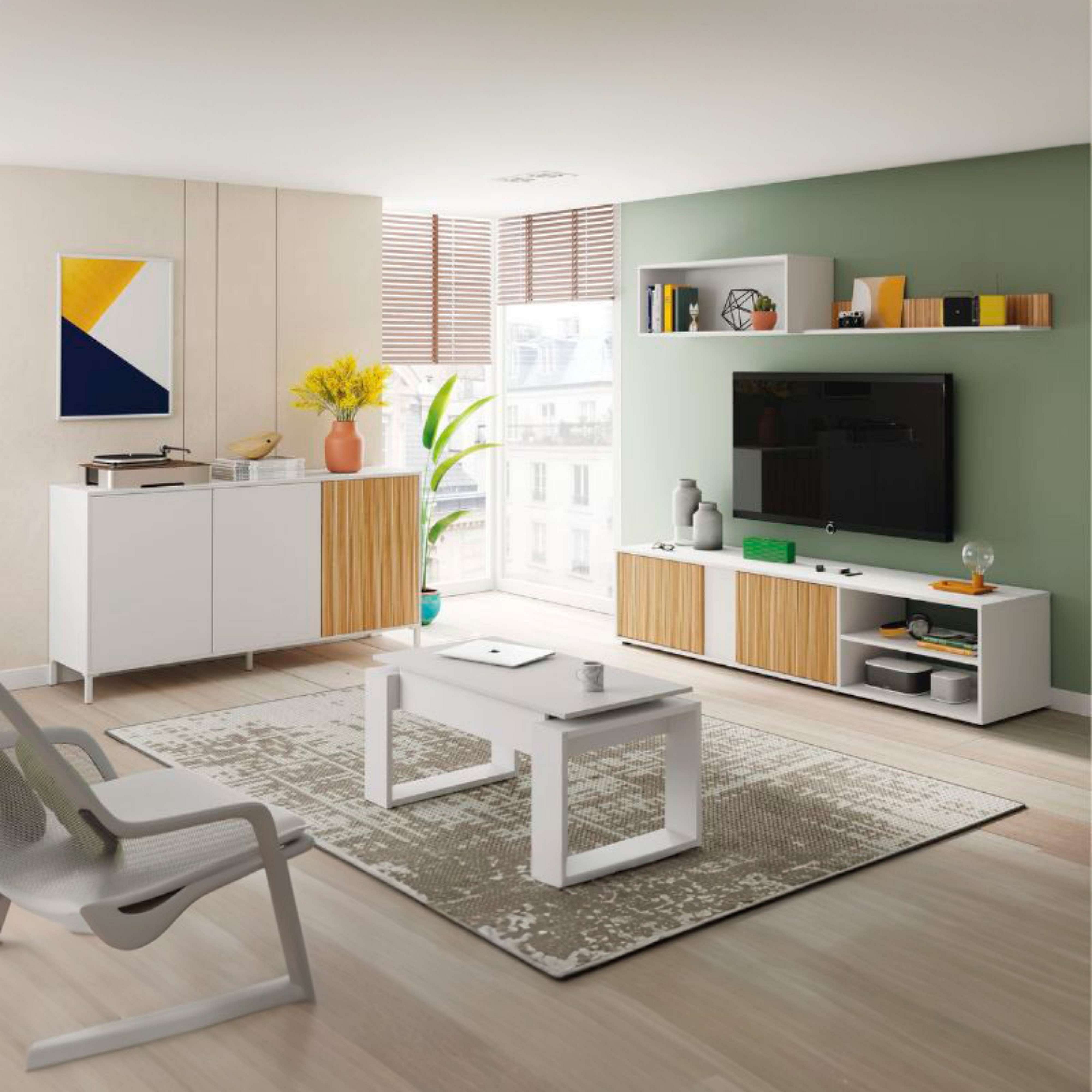 Pack muebles salón estilo moderno Roble nodi Blanco artik