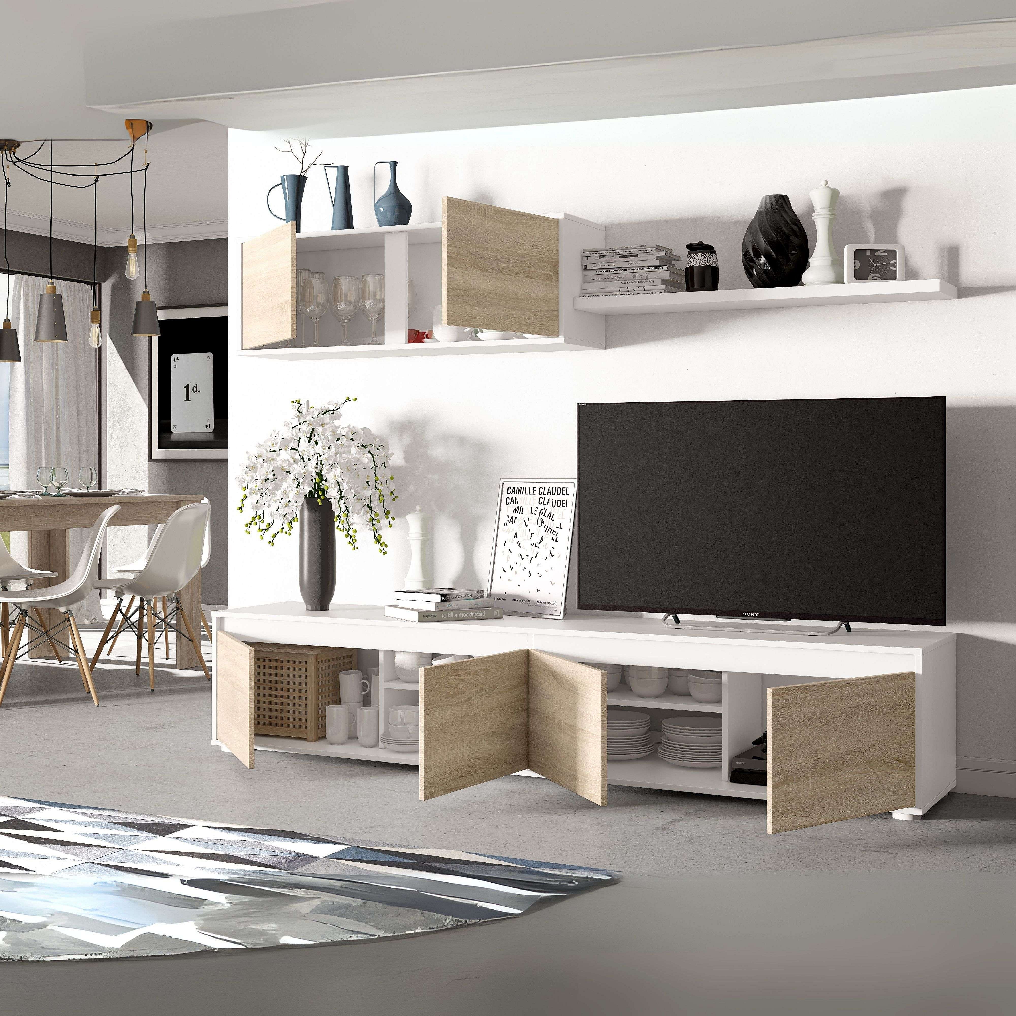 Pack Muebles Salón Moderno Blanco Mate y Roble Canadian