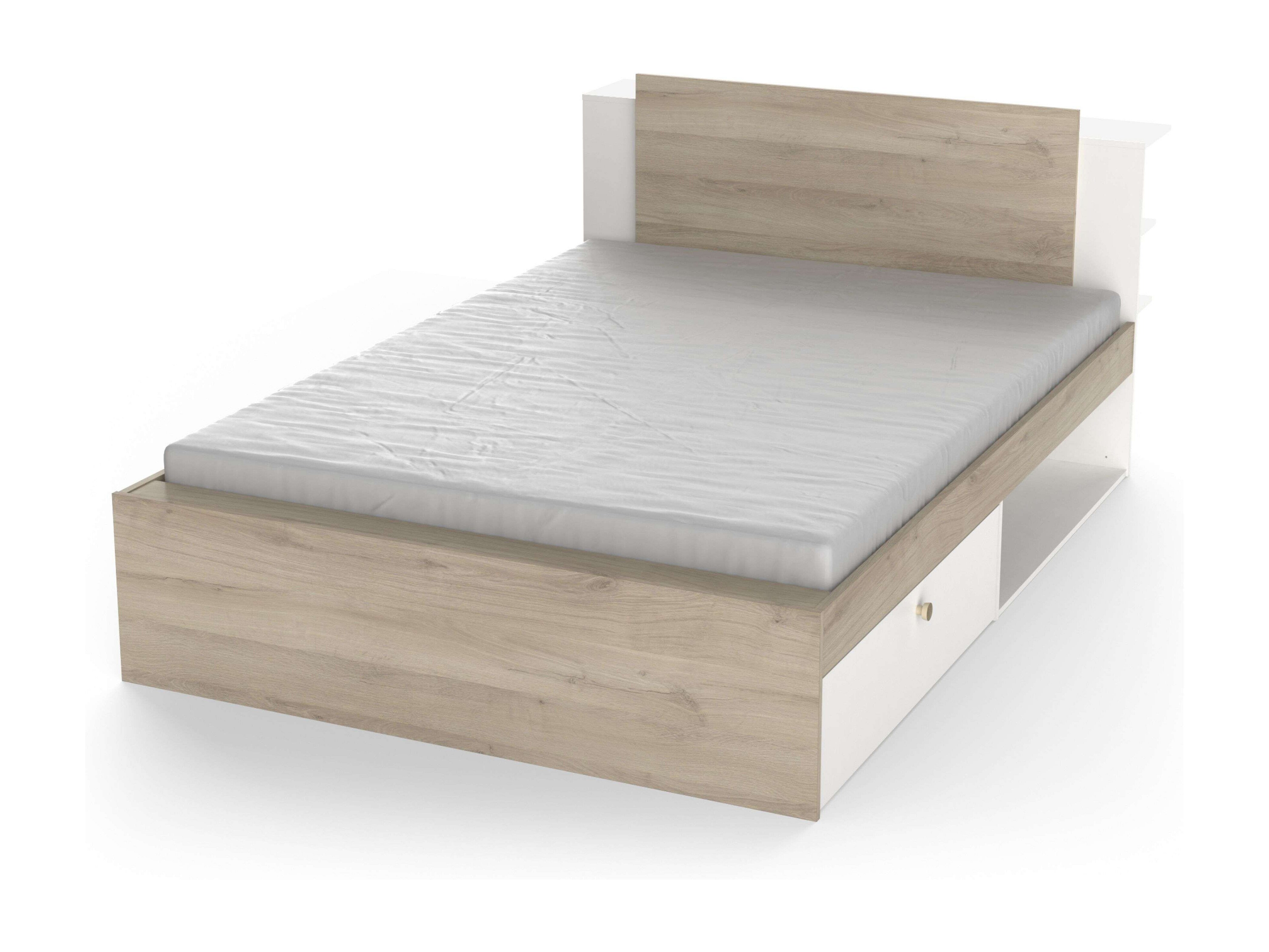 Pack Dormitorio John Cama 135-140x190 cm con Cajones y Cabecero Roble