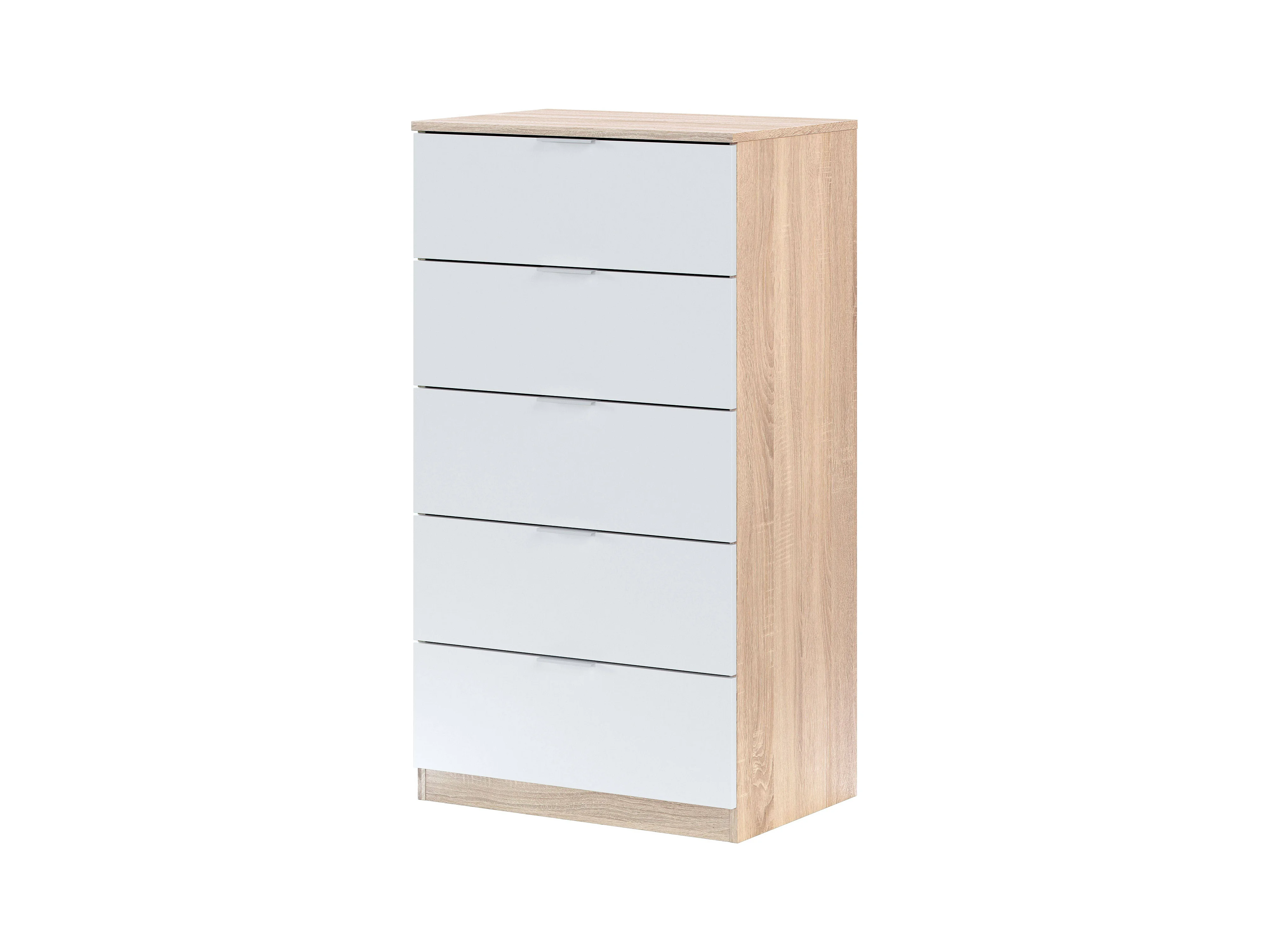 Pack Dormitorio Alaya Blanco y Roble 150cm (cama+cabecero+2 Mesas+arm.)