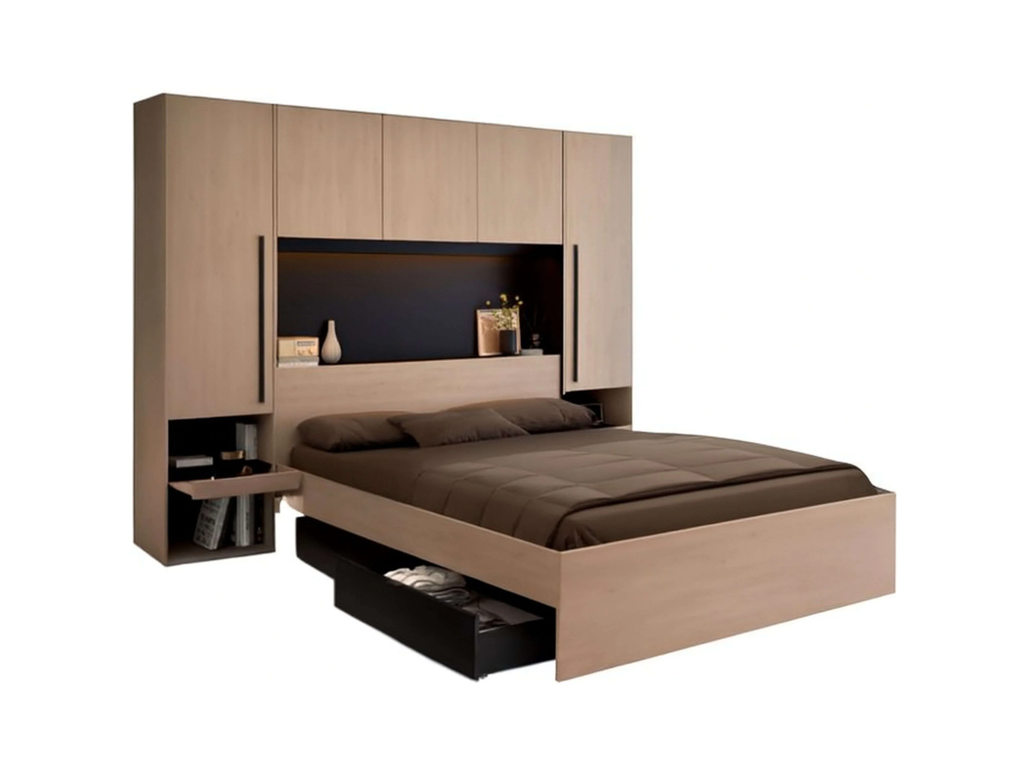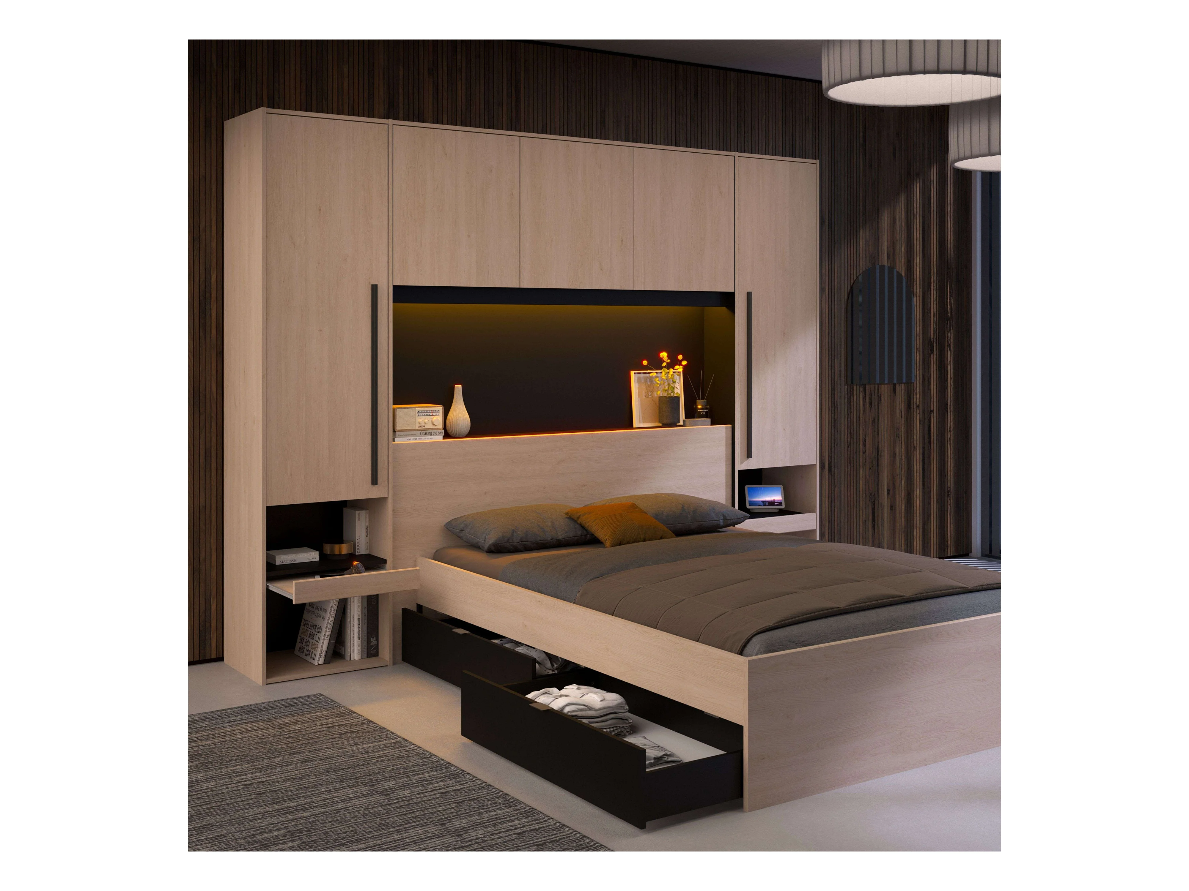 Pack Dormitorio Completo John Cama 135-140x190 cm, Cabecero Roble