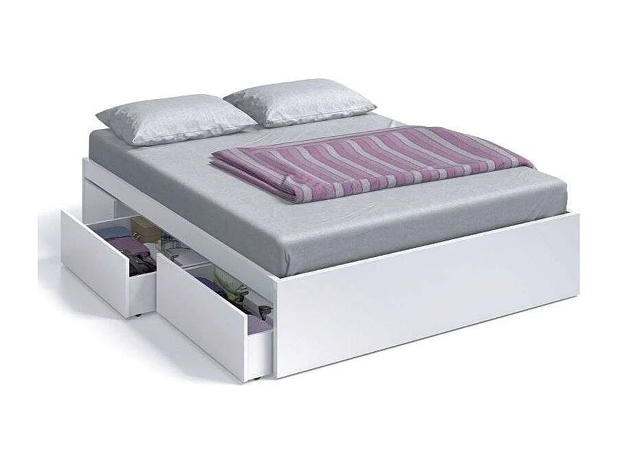 Set Muebles Dormitorio Blanco 150 cm (Cabecero + Mesitas + Cama + Cómoda)