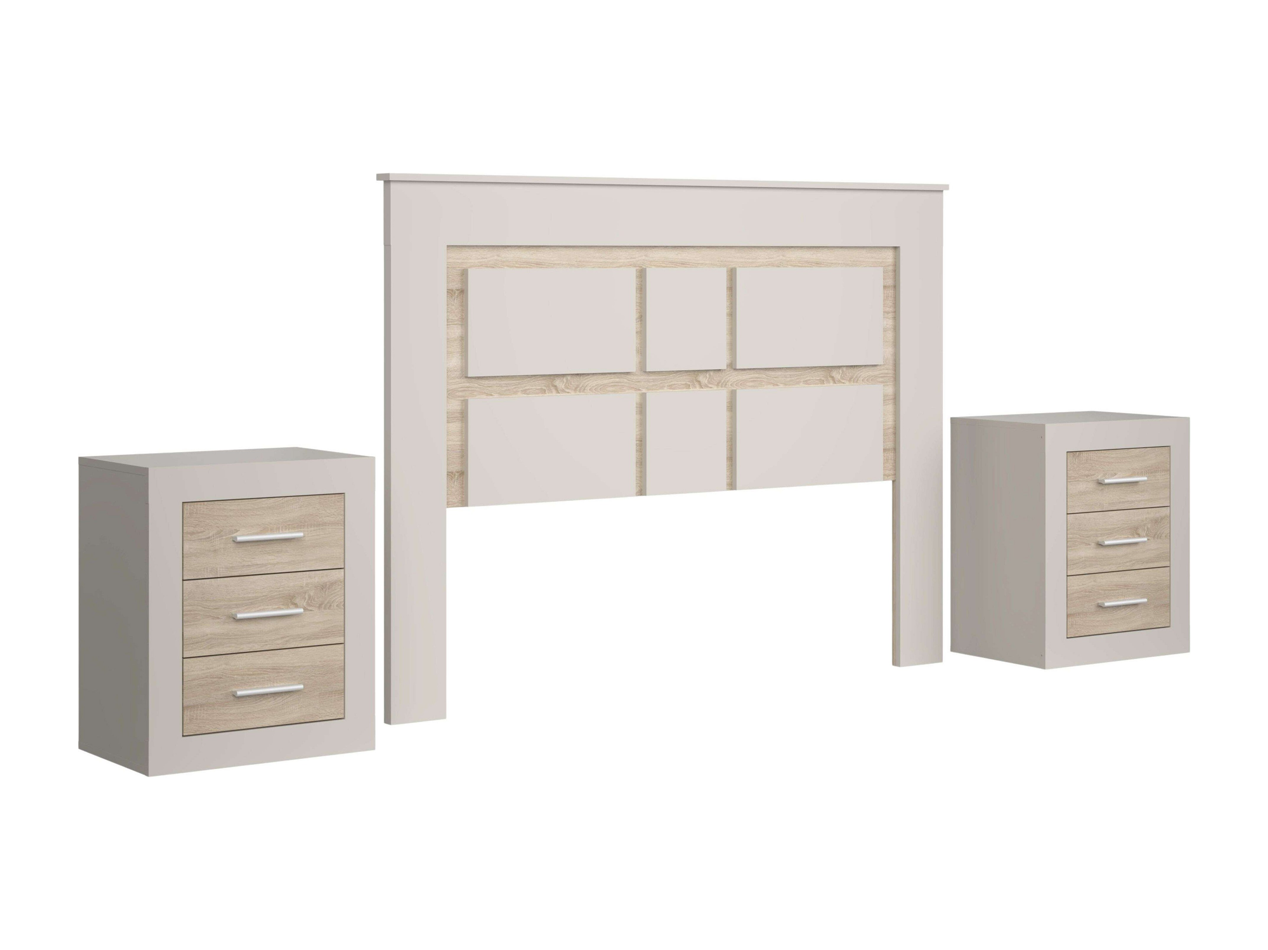 Pack Dormitorio Sara Nórdico Roble Sonoma Kashmir Cabecero 2 Mesitas