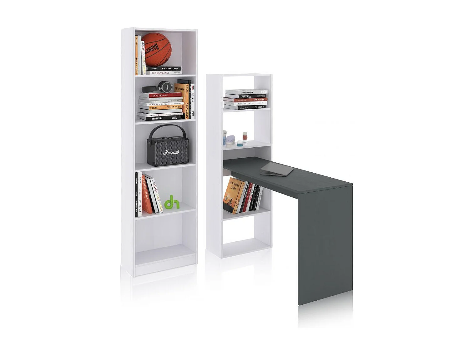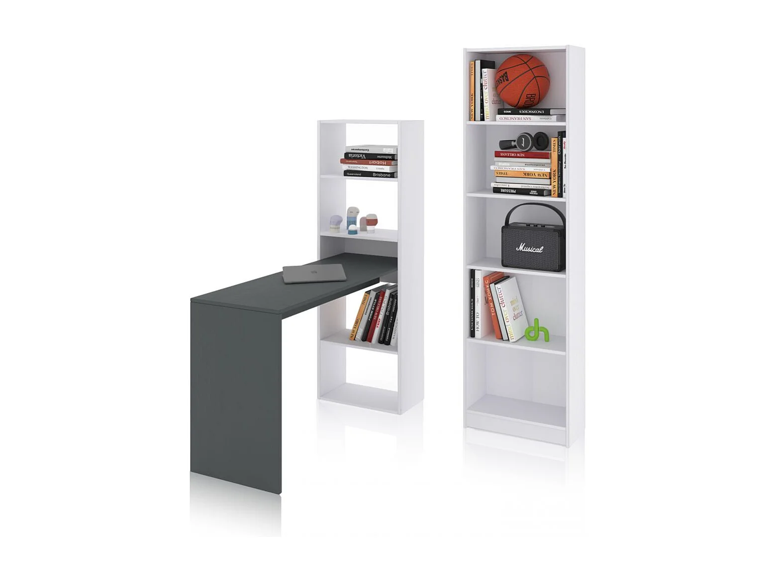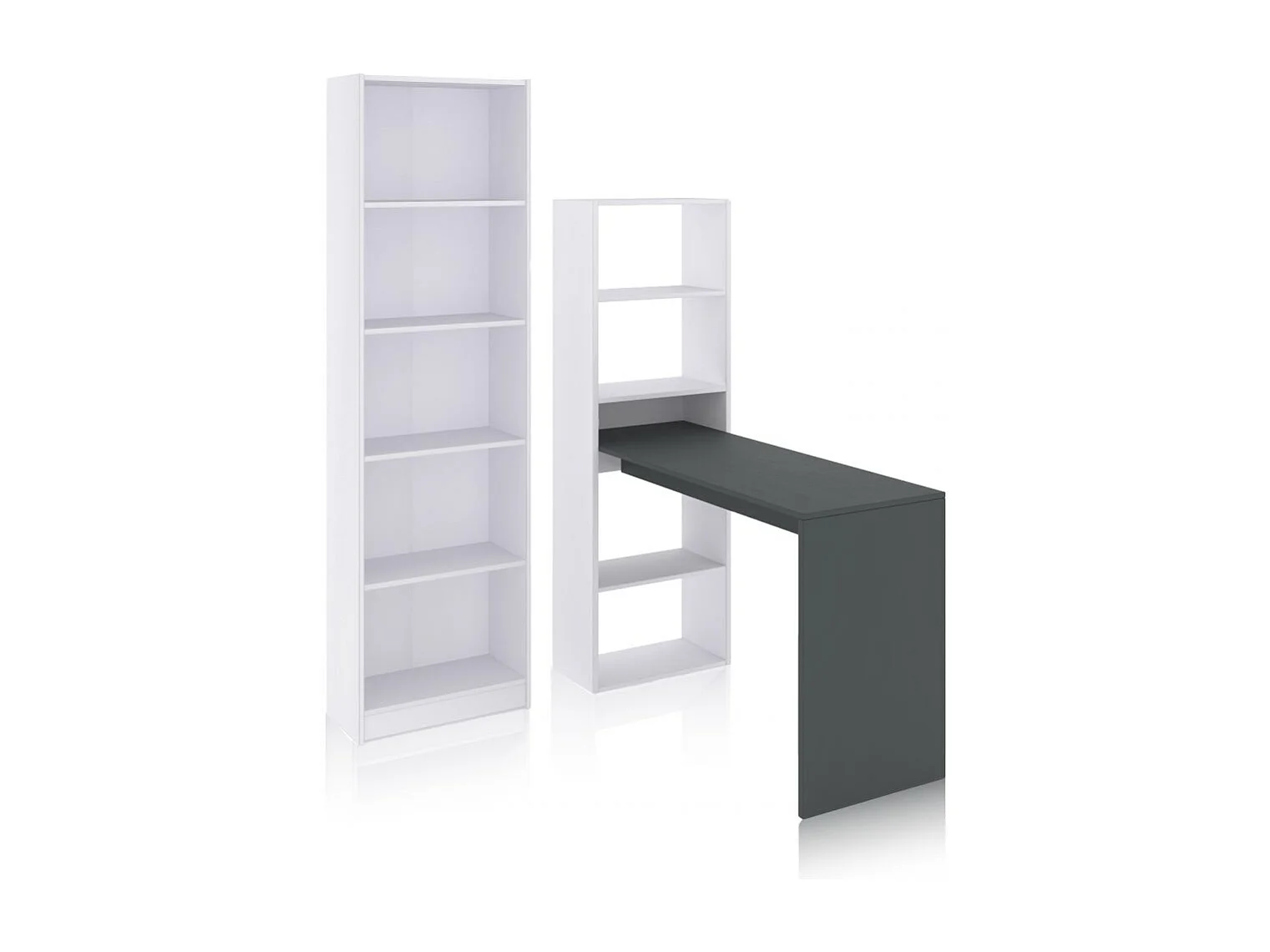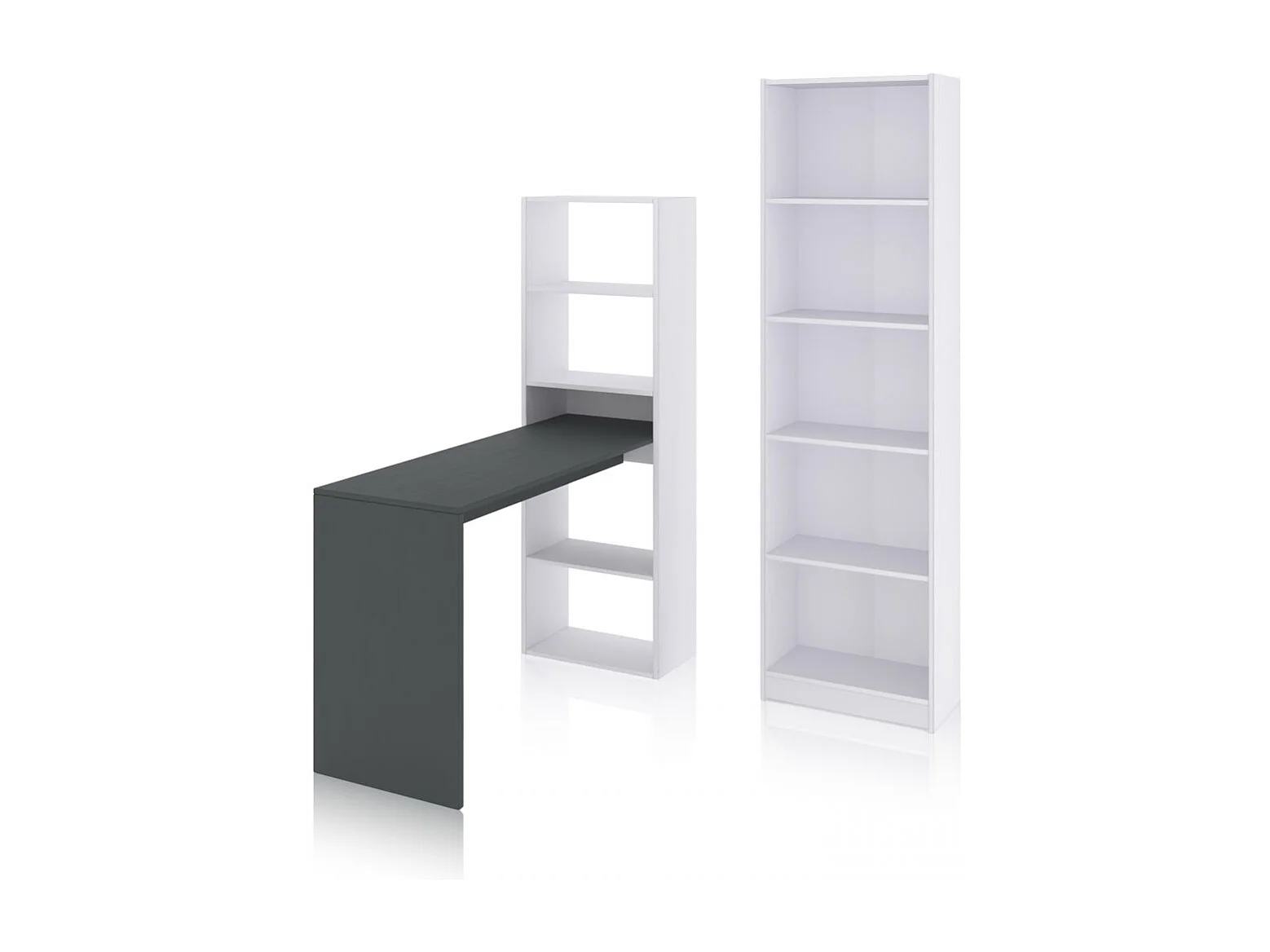 Pack escritorio y estantería Cosmic Plus Blanco Artik (Blanco Mate) - Gris Antracita