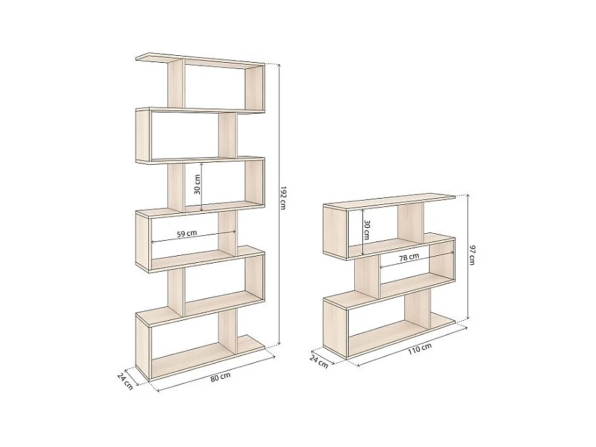 Estantería - AROL - MDF Roble y negro - MDF/Metal - 65x38,5x180 cm