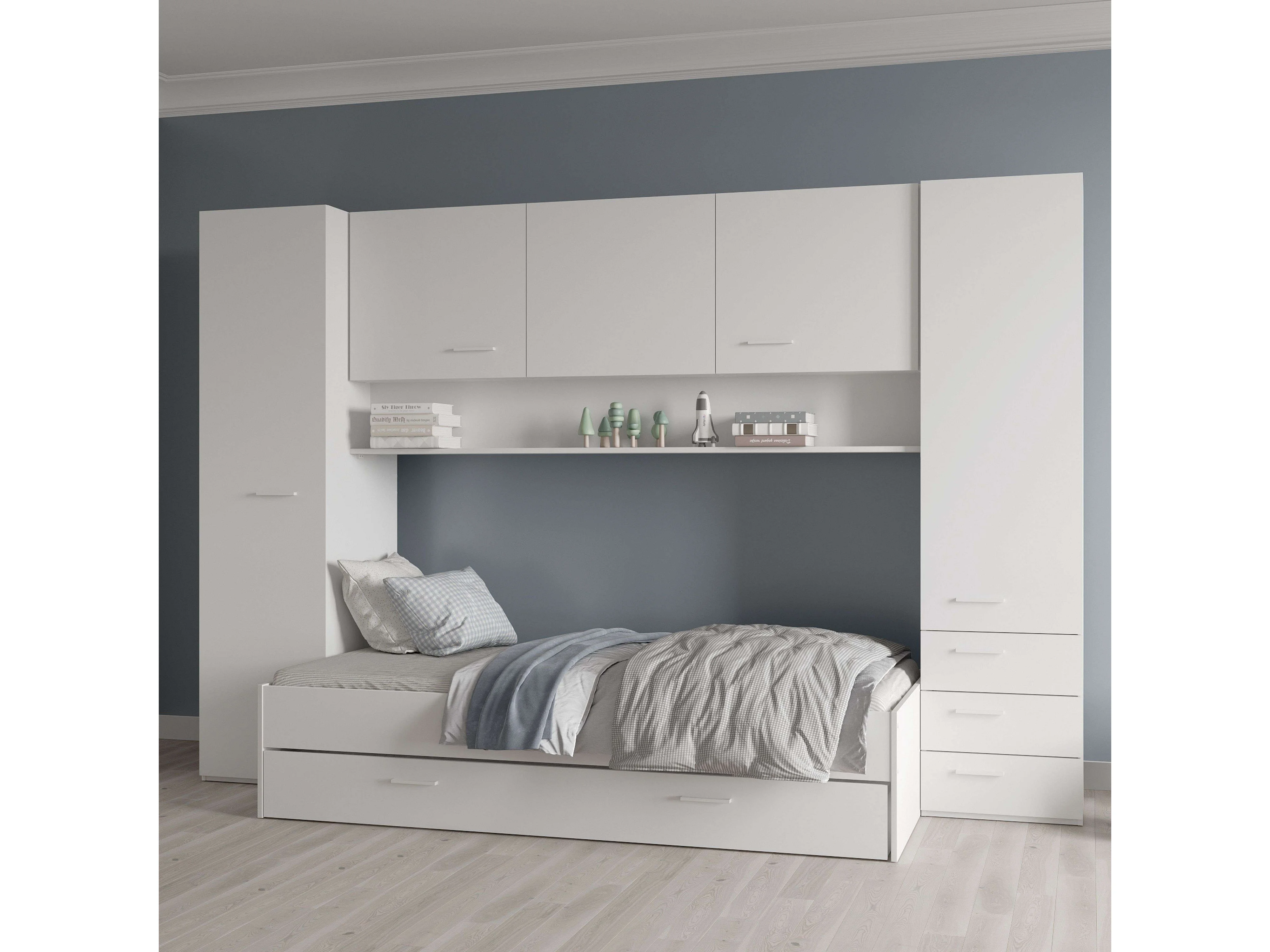 Pack hab. juvenil infantil Tidy blanco mate armario puente+cama ind.+cajón
