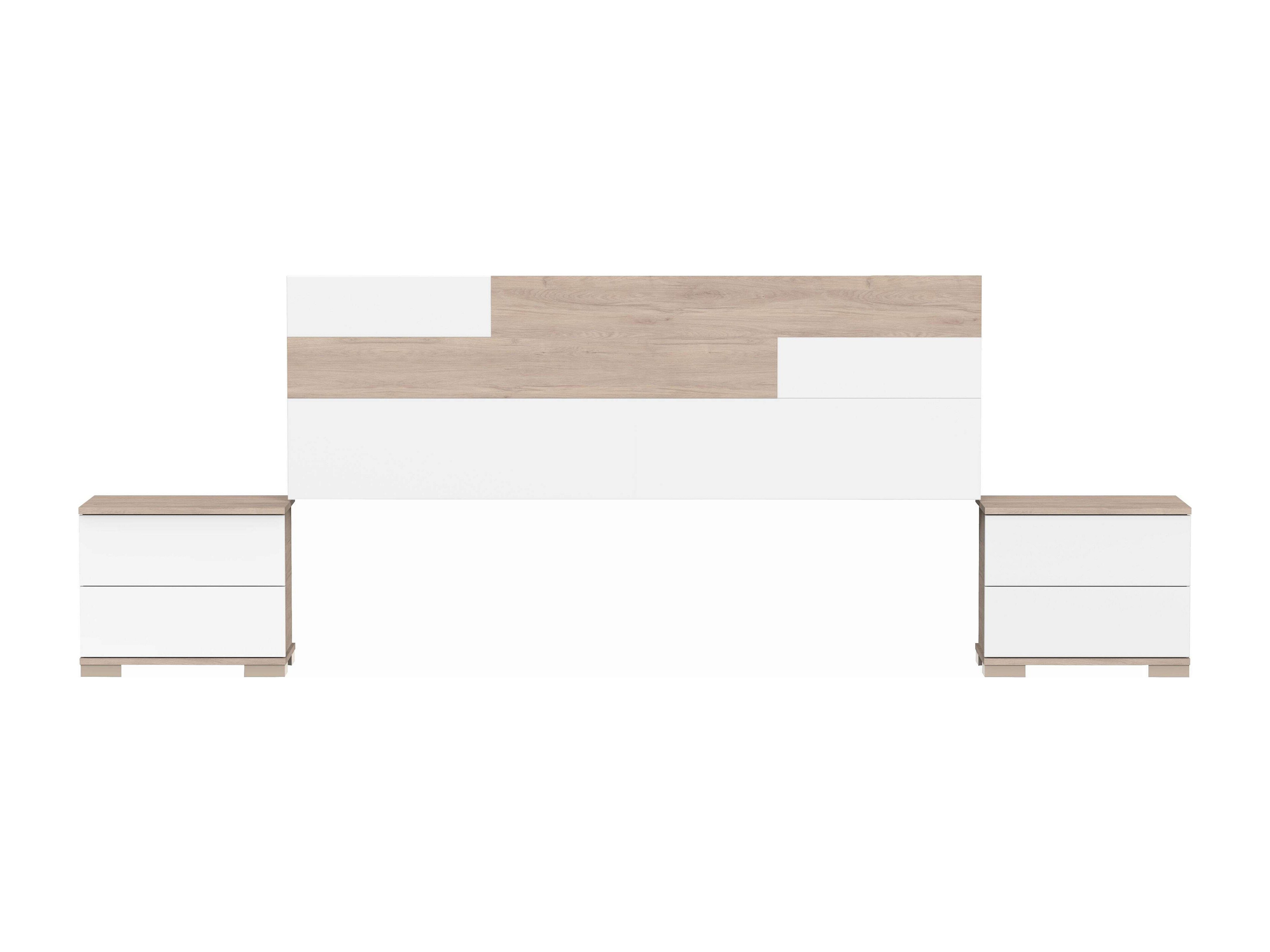 Pack Dormitorio Alaya Blanco y Roble 150cm (cama+cabecero+2 Mesas+arm.)