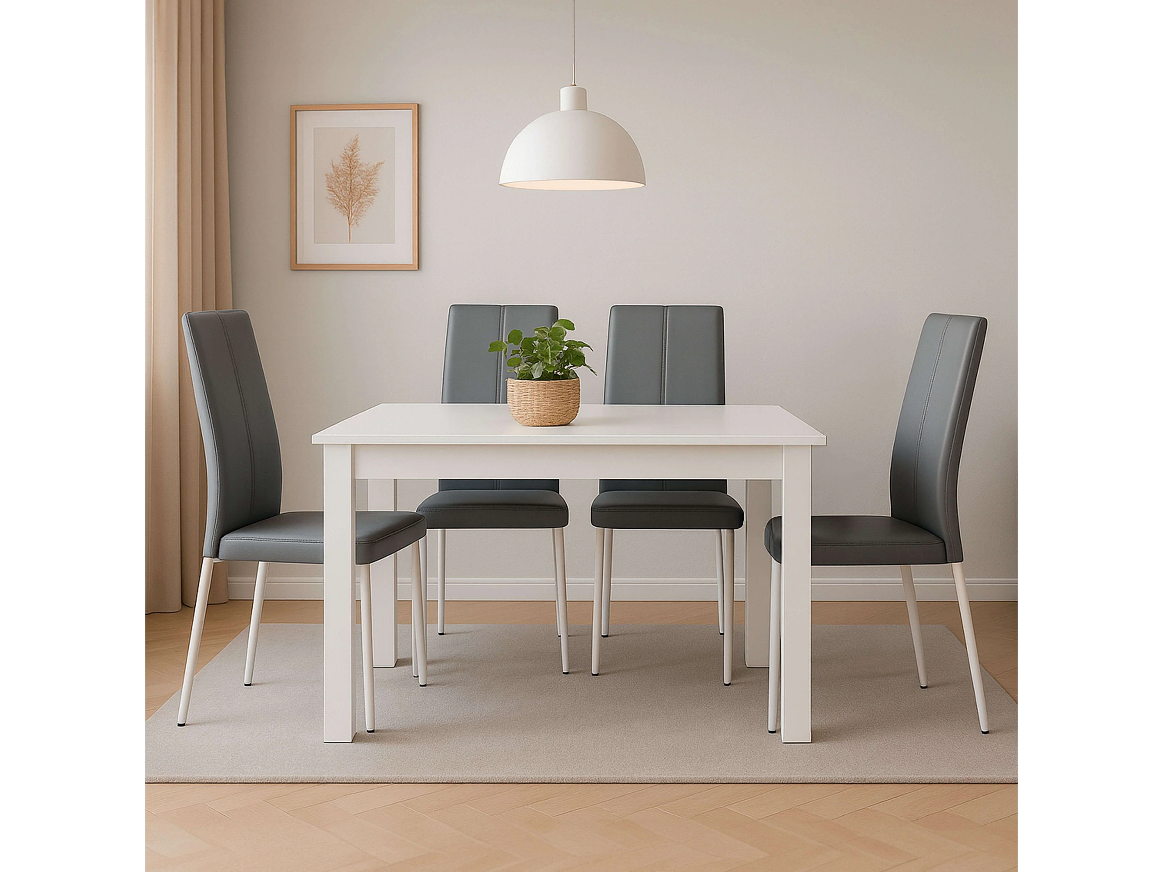 Pack mesa comedor fija + 4 sillas Sora gris/blanco (melamina/polipiel)