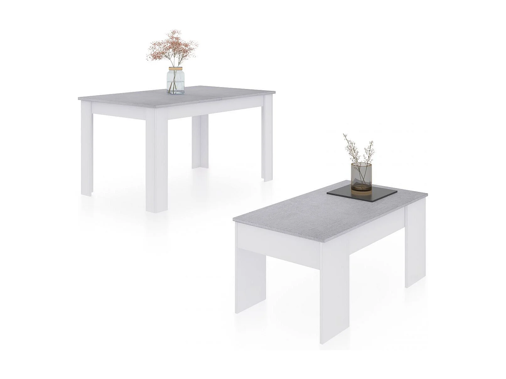 Pack mesa de comedor 140 y mesa de centro Vita Blanco Artik (Blanco Mate) - Gris Cemento