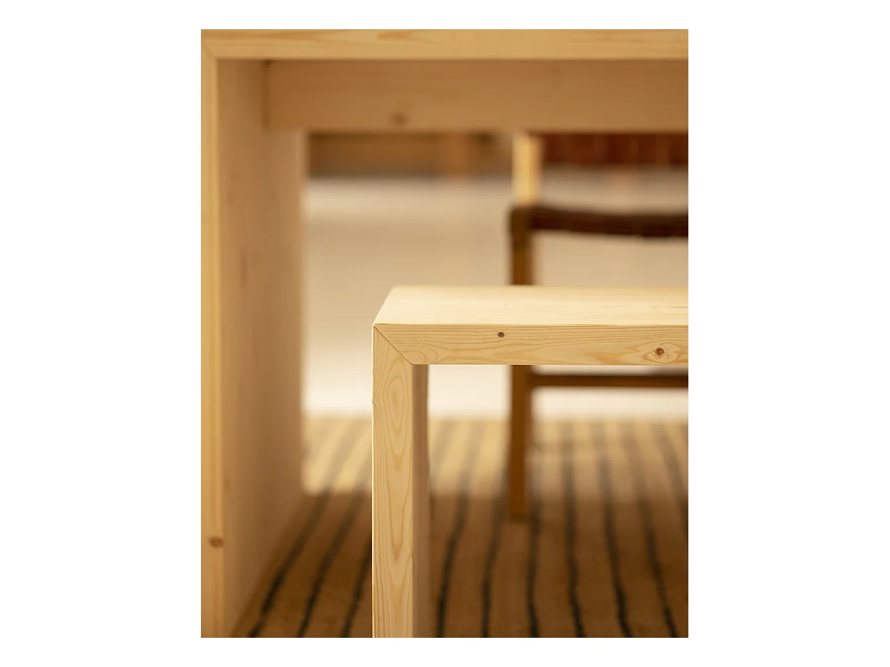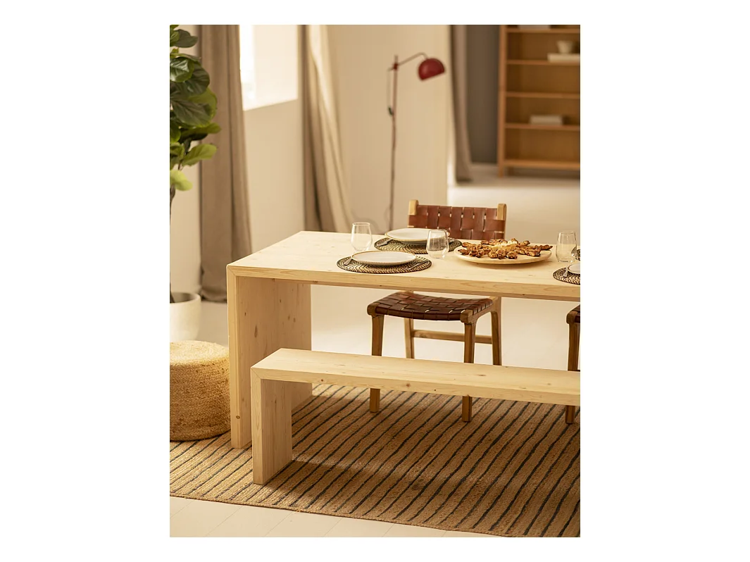 Pack mesa de comedor de 160x75cm y banco de 145x45cm rectangulares de madera de abeto maciza Decowood en tono natural - TELVA - DECOWOOD