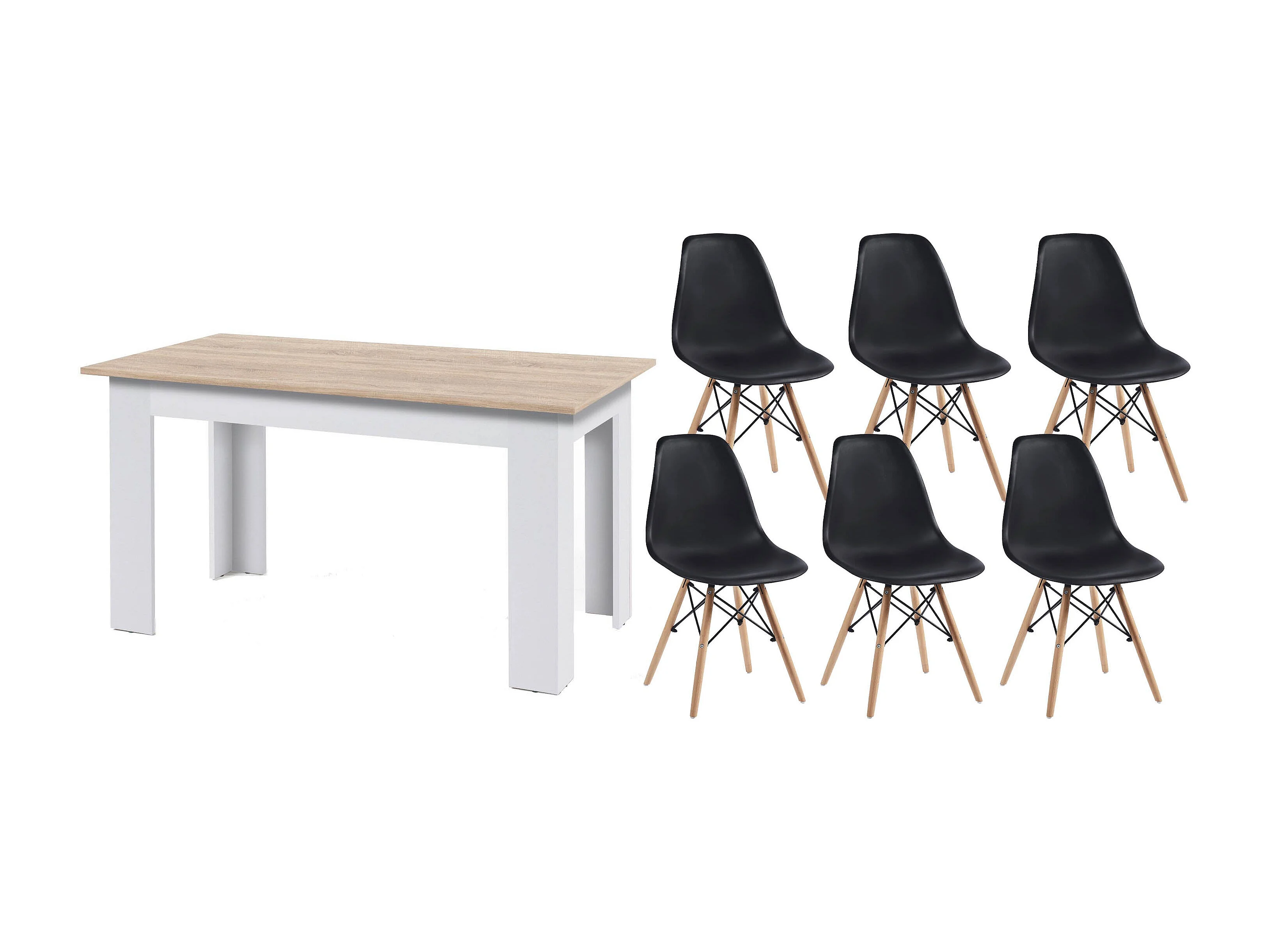 Pack Mesa de Comedor o Cocina Fija + 6 Sillas Estilo Nordico