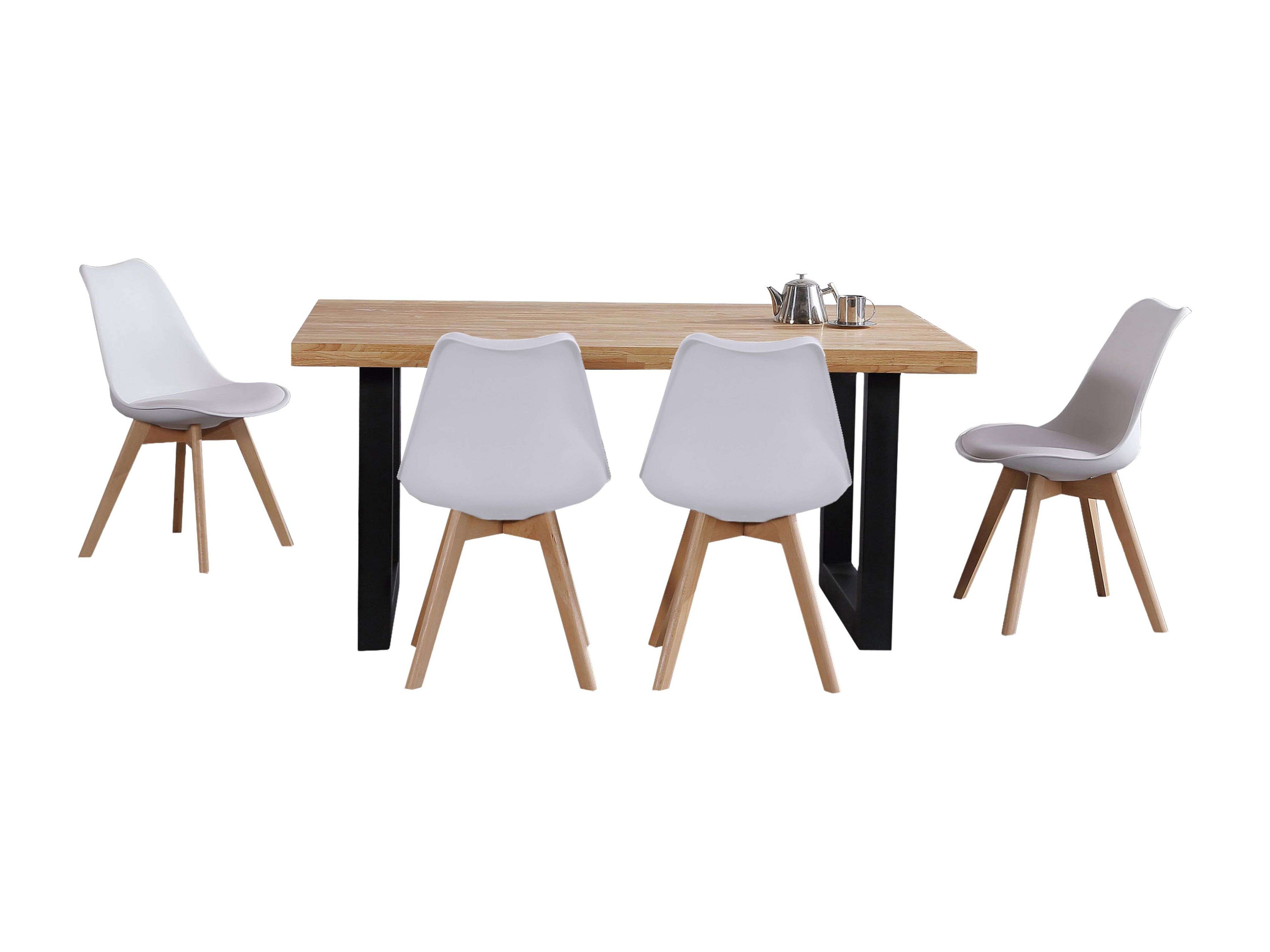 Pack Mesa Loft Industrial Roble/Negro + 4 Sillas Nórdicas Blanco/Roble