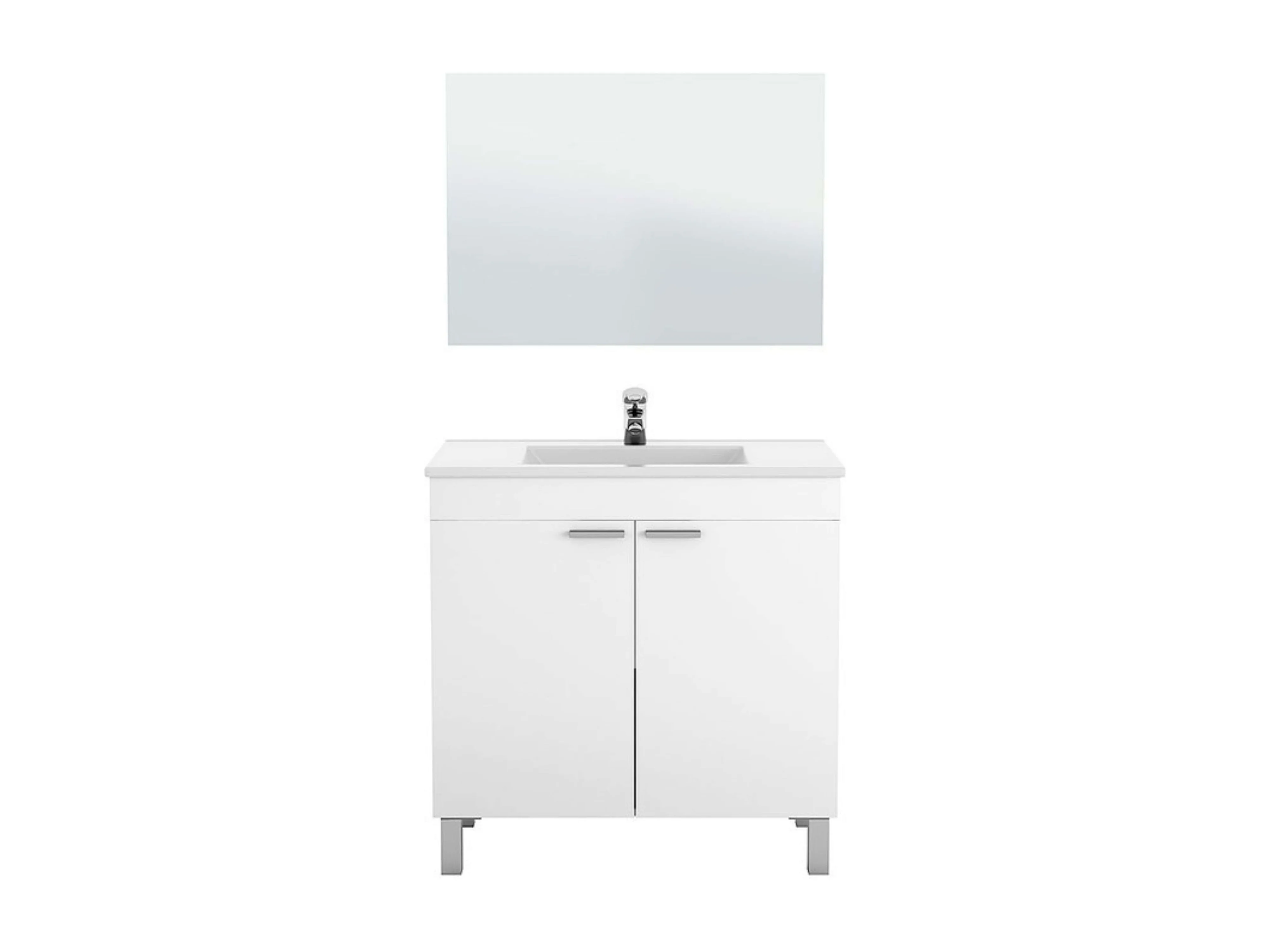 Pack baño Blanco brillo: mueble + espejo + lavabo cerámico + col. auxiliar