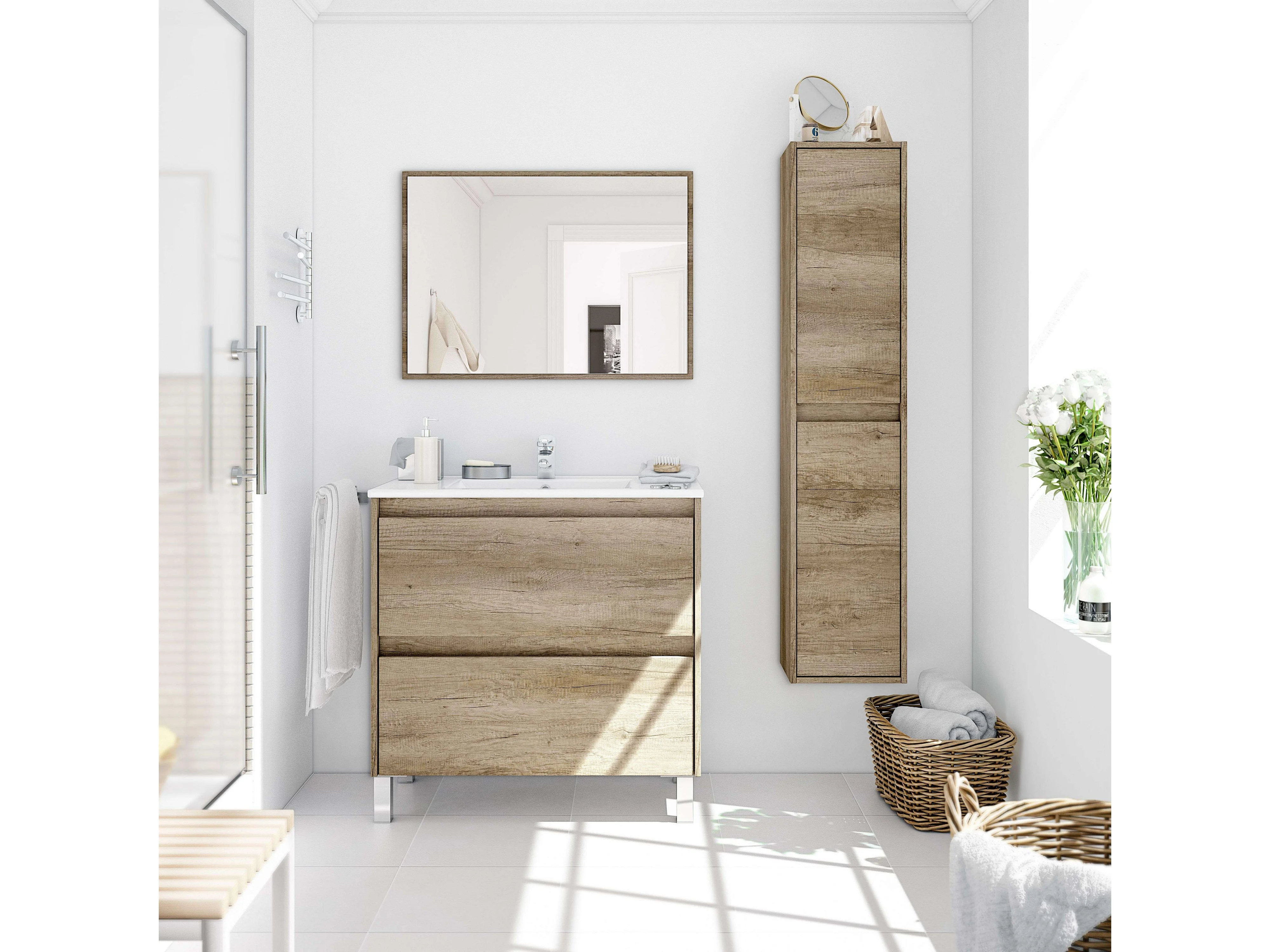 Pack Muebles Baño Roble Nordik: Mueble, Columna, Espejo, Lavabo