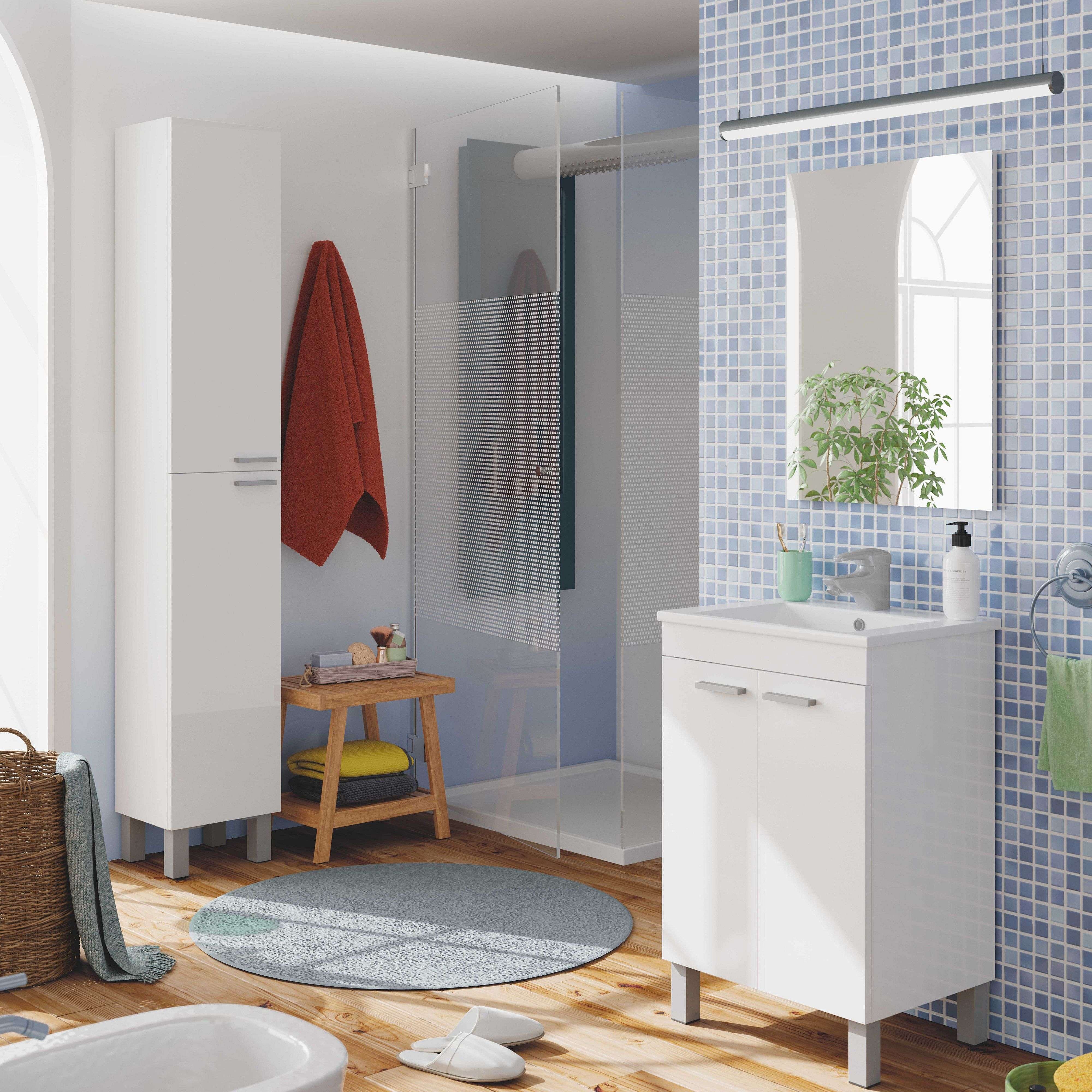 Pack mueble baño blanco brillo moderno: mueble + espejo + columna + lavabo