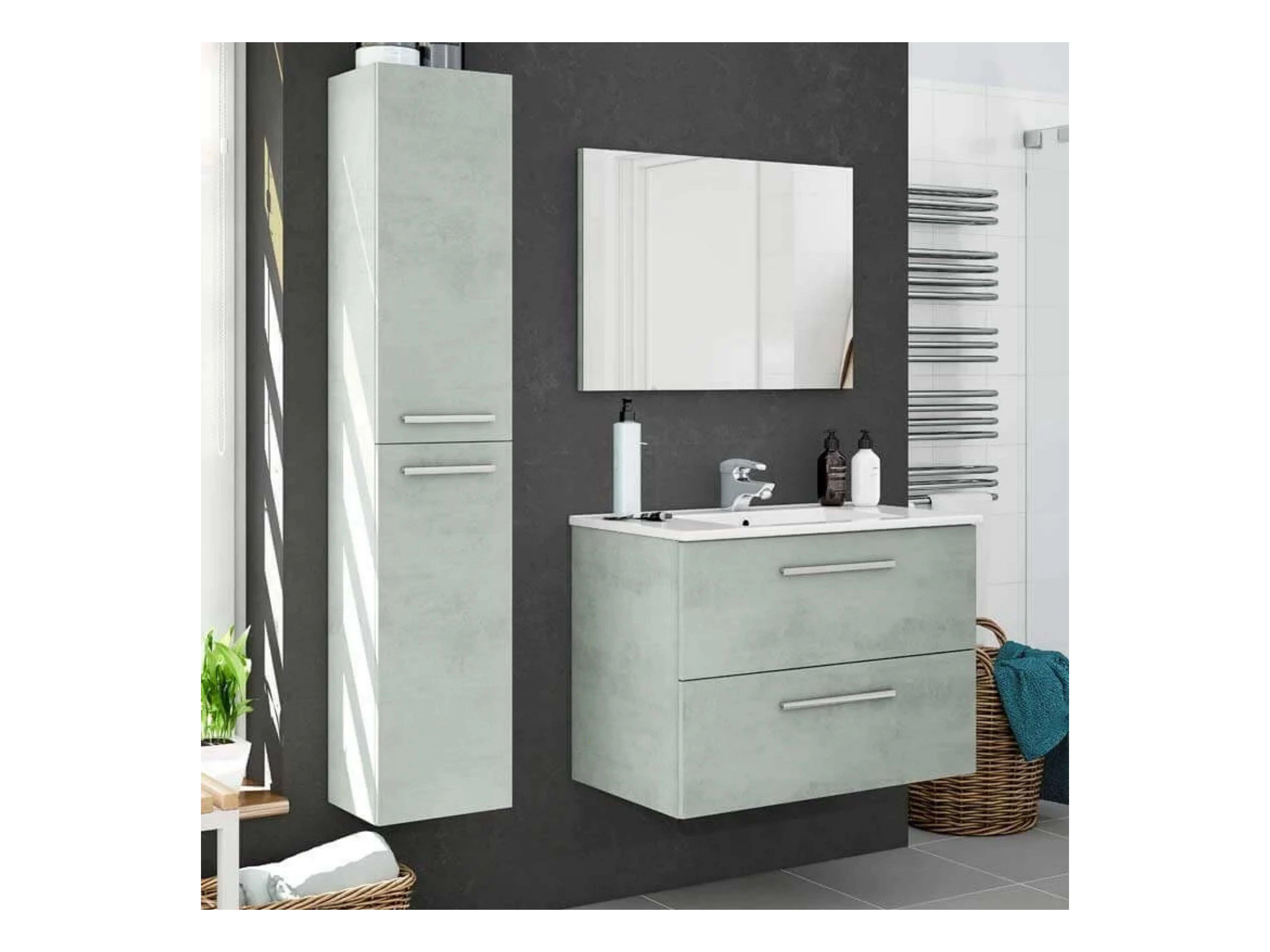 Conjunto de baño NOYA gris - mueble bajo lavabo, espejo con almacenamiento y columna suspendida
