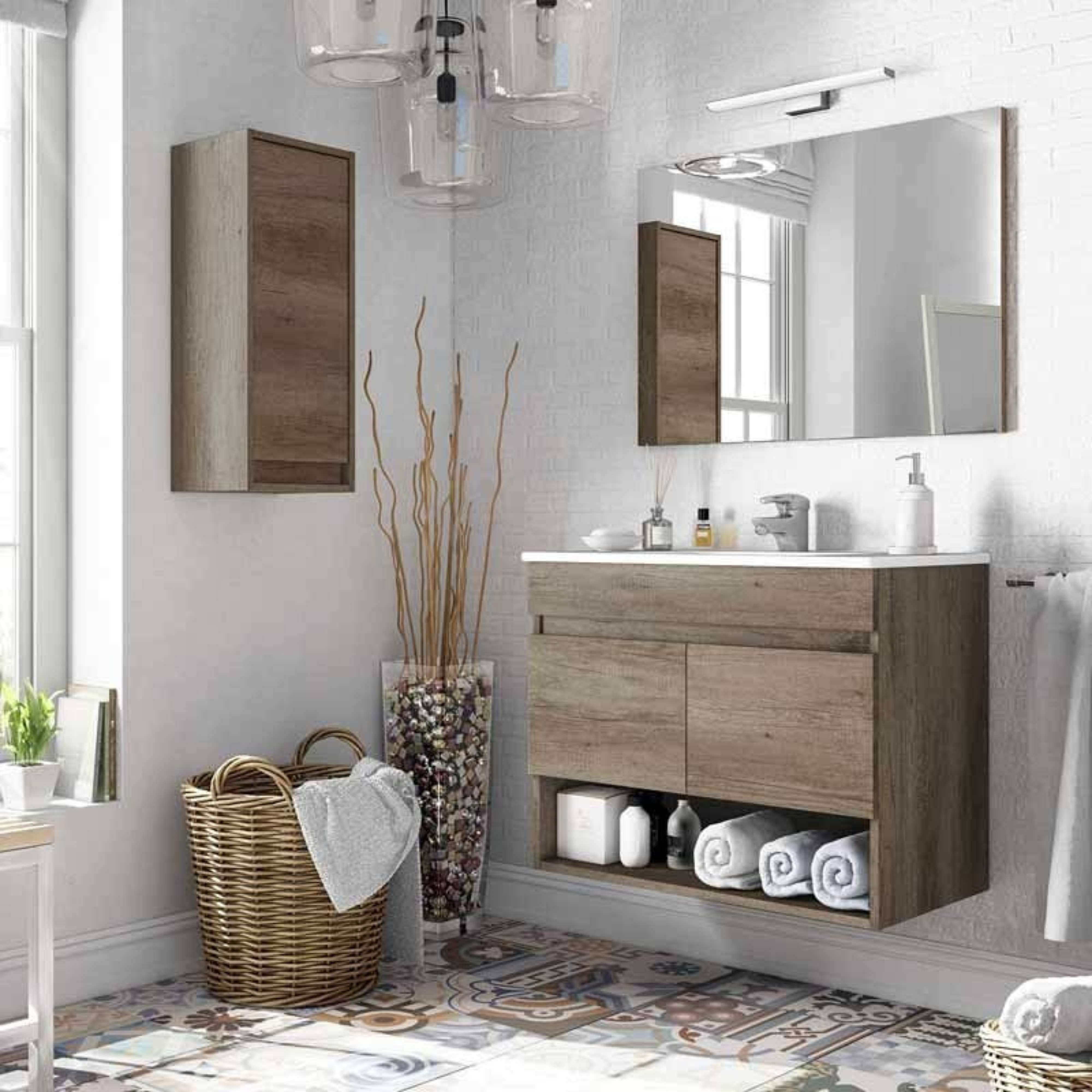 Pack Muebles Baño Roble Nordik: Mueble, Armario, Espejo, Lavabo