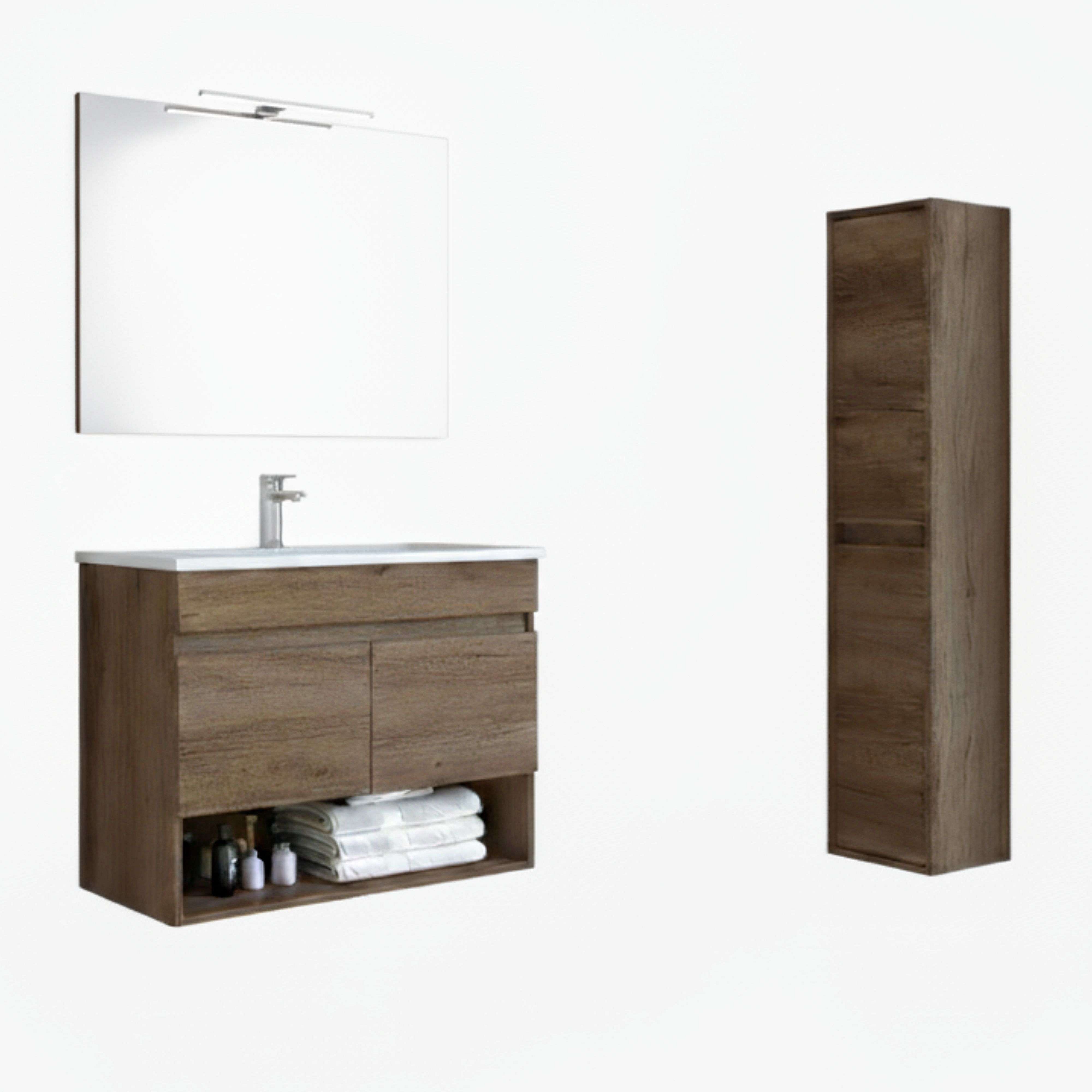 Pack Muebles Baño Roble Nordik: Mueble, Columna, Espejo, Lavabo
