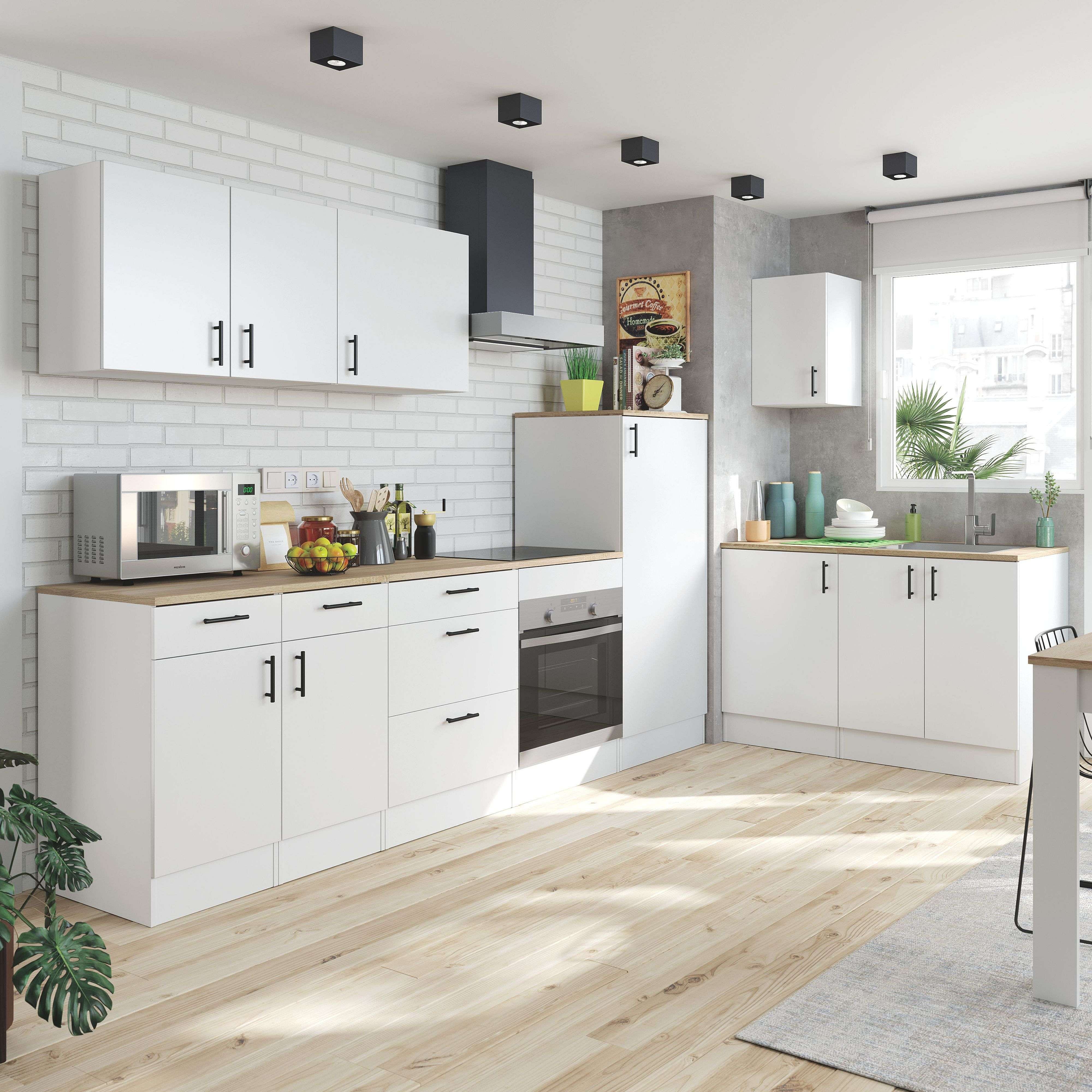 Pack Muebles Cocina Kira 10 Módulos Nórdico Blanco Brillo Roble Canadian