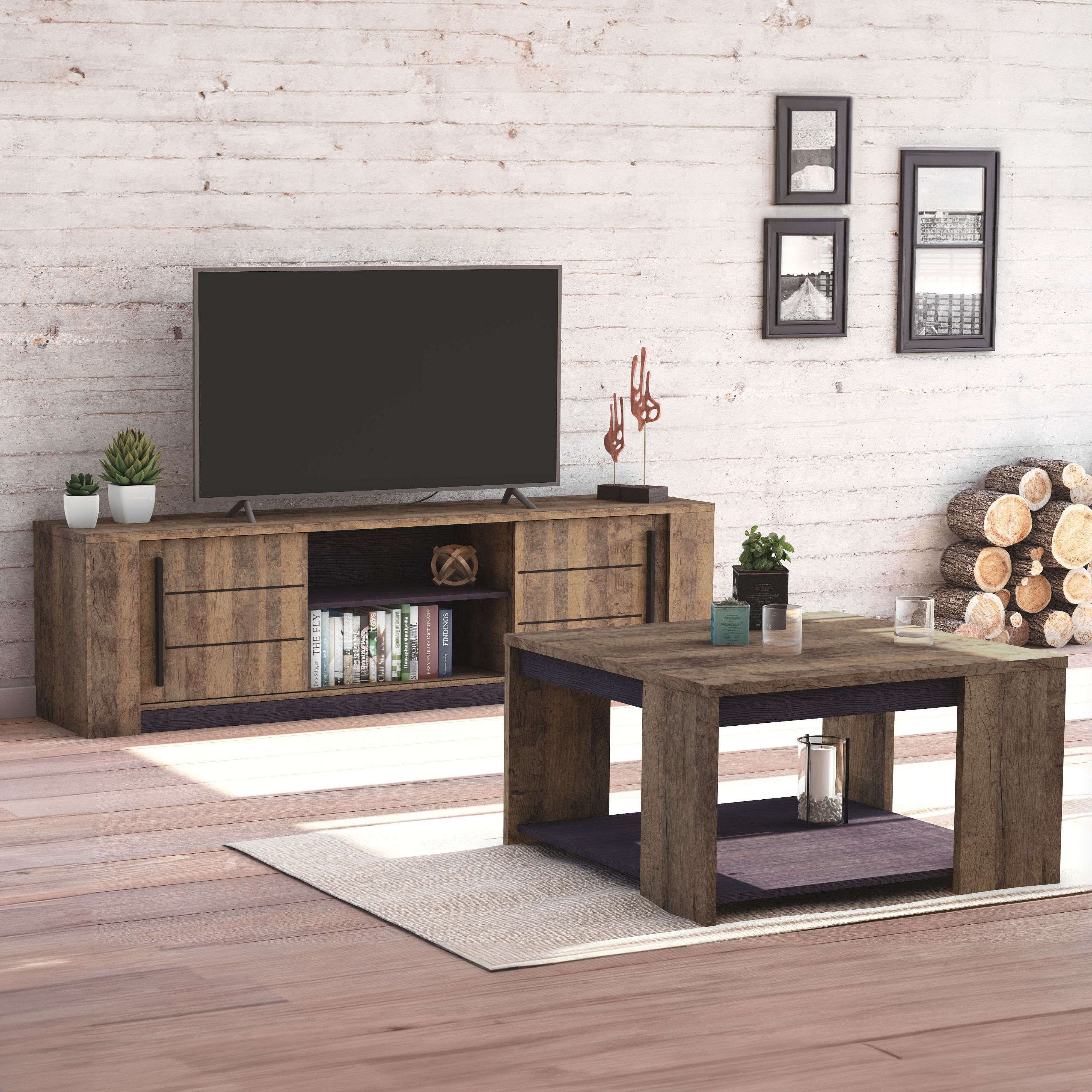 Conjunto de 3 muebles de salón colección MILO. Color roble. Estilo industrial.